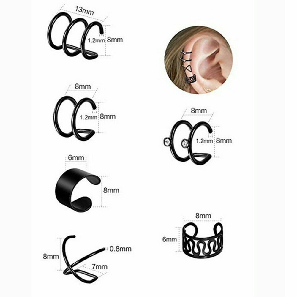 12x Women Men Stainless Steel Ear Clips on Wrap Cuff Earrings Set Non Piercing Specifications: Condition: 100% Brand New and High Quality ! Color: Silver, Black, Gold, Rose gold For: Women, Men Item: Ear cuff Material: Stainless steel A perfect gift for yourself or friend Package Includes: 12pcs (6 Pair) Ear Clips Note: 1. Some pictures look bigger, please refer to the exact item size. 2. Please note that due to lighting effects, monitor's brightness and contrast settings, the color of the products may vary slightly between our photos and the item actually received. 3. We thank you for your understanding.