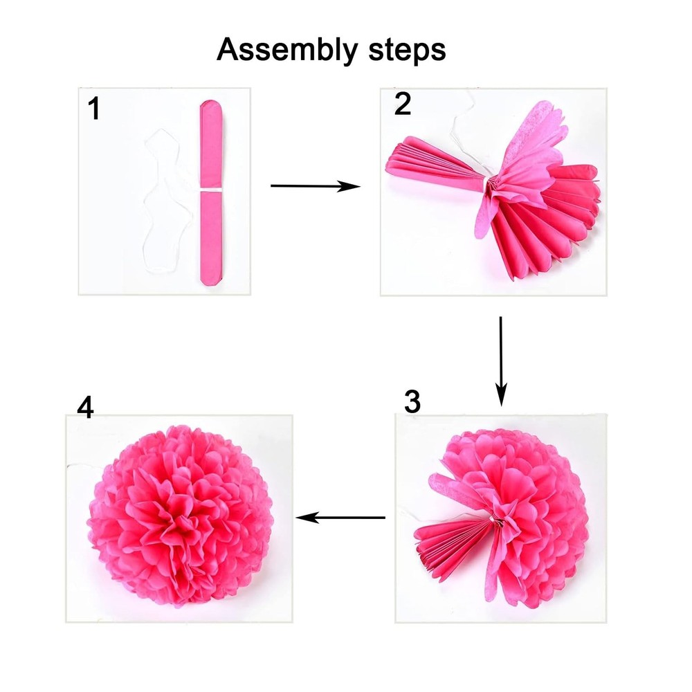 PAPER POM POMS DECORATIONS: Package includes: 1 pc 10" red ,1 pc 10" orange ,1 pc 10" yellow ,1 pc 10" green ,1 pc 10" blue ,1 pc 10" purple ,1 pc 12" red ,1 pc 12" orange ,1 pc 12" yellow ,1 pc 12" green ,1 pc 12" blue ,1 pc 12" purple paper pom-poms. RAINBOW PARTY DECOR for indoor or outdoor use. very well for birthday party, baby shower, anniversary, wedding, holiday party, Graduation and other theme party. HANGING THE POM POMS from your ceiling, window, mantel, overhangs, doorway, archway, branches in trees, verandah, etc. PAPER FLOWER POM POMS Used in lieu of balloons, for they are more environmental, lightweight and hasslefree. They can be scattered as dessert table decor, or placed in vases as unique centerpieces. Use this gorgeous decorative paper at your party, you can create a wonderful backdrop for your family or friends. CAUTION: Please keep away from flame and direct heat sources.