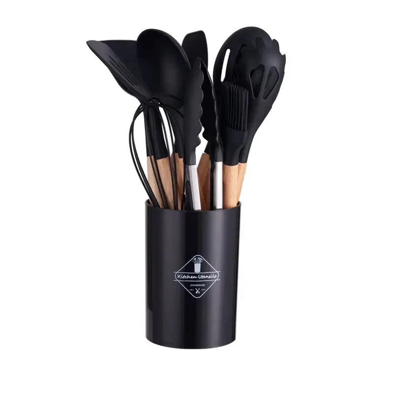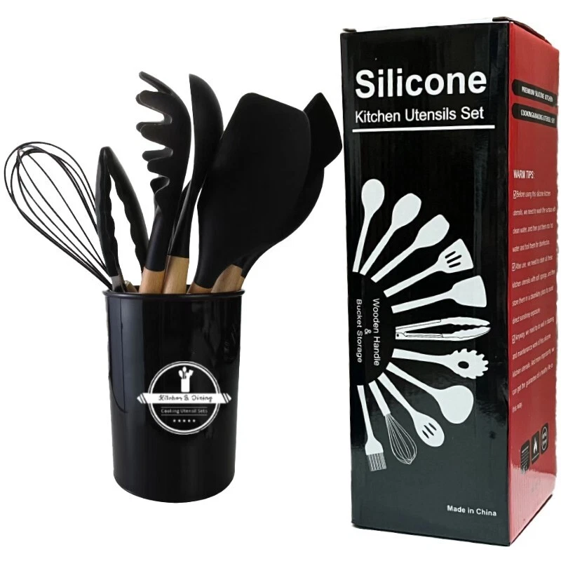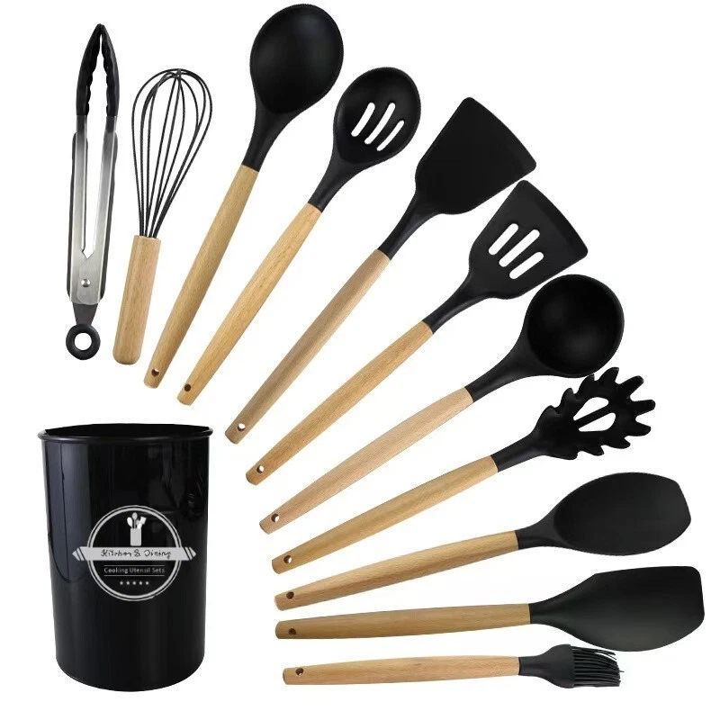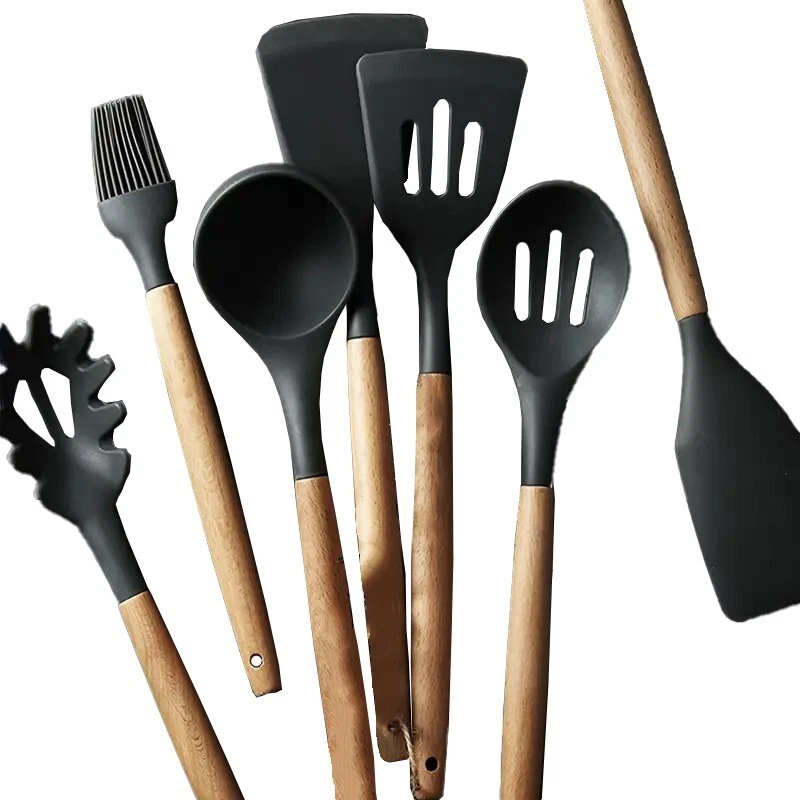 Heat resistant and durable: Our silicone kitchenware set is made of high-quality food grade silicone and can withstand temperatures up to 446 ° F. Whether you're stewing delicate sauces at high temperatures or scorching steaks, this cookware set can handle it all. High quality silicone ensures long-lasting durability, making it a reliable supplement to your daily kitchen cooking Safe, BPA free, and food grade materials: Made from high-quality food grade silicone, this silicone kitchenware set is BPA free and can safely cook any type of food. Unlike ordinary plastic tableware, it does not leave any odors or stains, and does not react with the ingredients, ensuring a healthy diet for your family. Before first use, soak the tableware in water and ventilate it for 3 hours to eliminate any initial odors Non stick cookware and easy to clean: These silicone cookware sets include 9 cooking tools and 4 baking utensils, which can meet the basic needs of kitchen cooking. It is equipped with a deep soup spoon, solid service spoon, slotted spoon, elastic shovel, circular shovel, pasta server, slotted pot, etc. These silicone cookware not only protect non stick pans from scratches, but also have excellent softness. The smooth silicone surface makes food easy to release, making cooking and cleaning effortless Flexible and non deformable design: Each tool in this scraper set is reinforced with a stainless steel core and completely wrapped in silicone, providing a perfect balance of strength and flexibility. This seamless design prevents food from getting trapped in crevices, ensuring ease of cleaning and better hygiene. Over time, these tools will maintain their shape and be gentle on non stick surfaces. There are small holes on the handle for easy hanging and storage. For optimal care, we recommend hand washing to maintain the wooden handle Ideal Gift and Quick Response: This silicone kitchenware set is an excellent gift for housewarming banquets, weddings, and the New Year. We prioritize customer satisfaction and are committed to providing quick response support for any inquiries. Contact us through the Amazon buyer page and we will reply within 12 hours to provide assistance