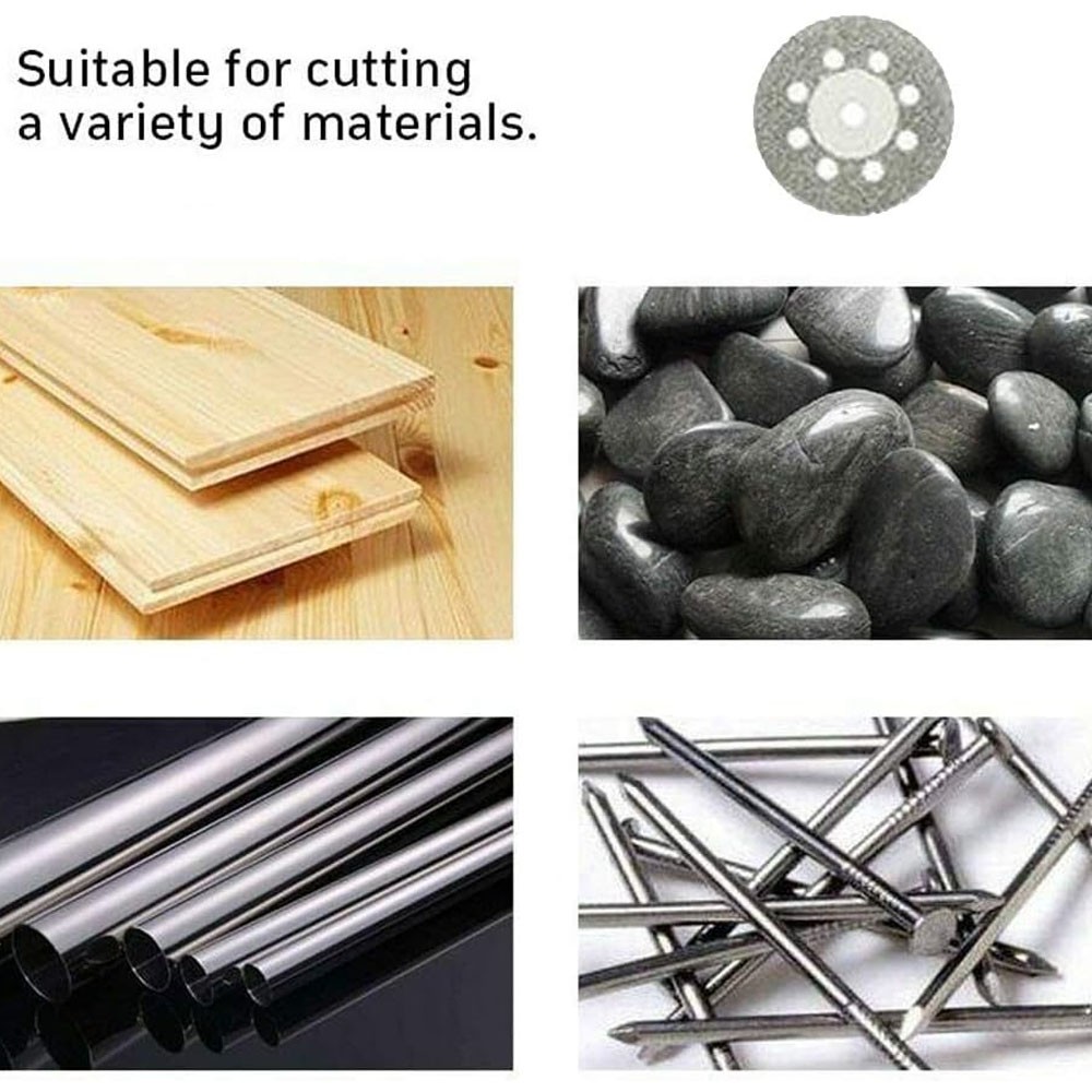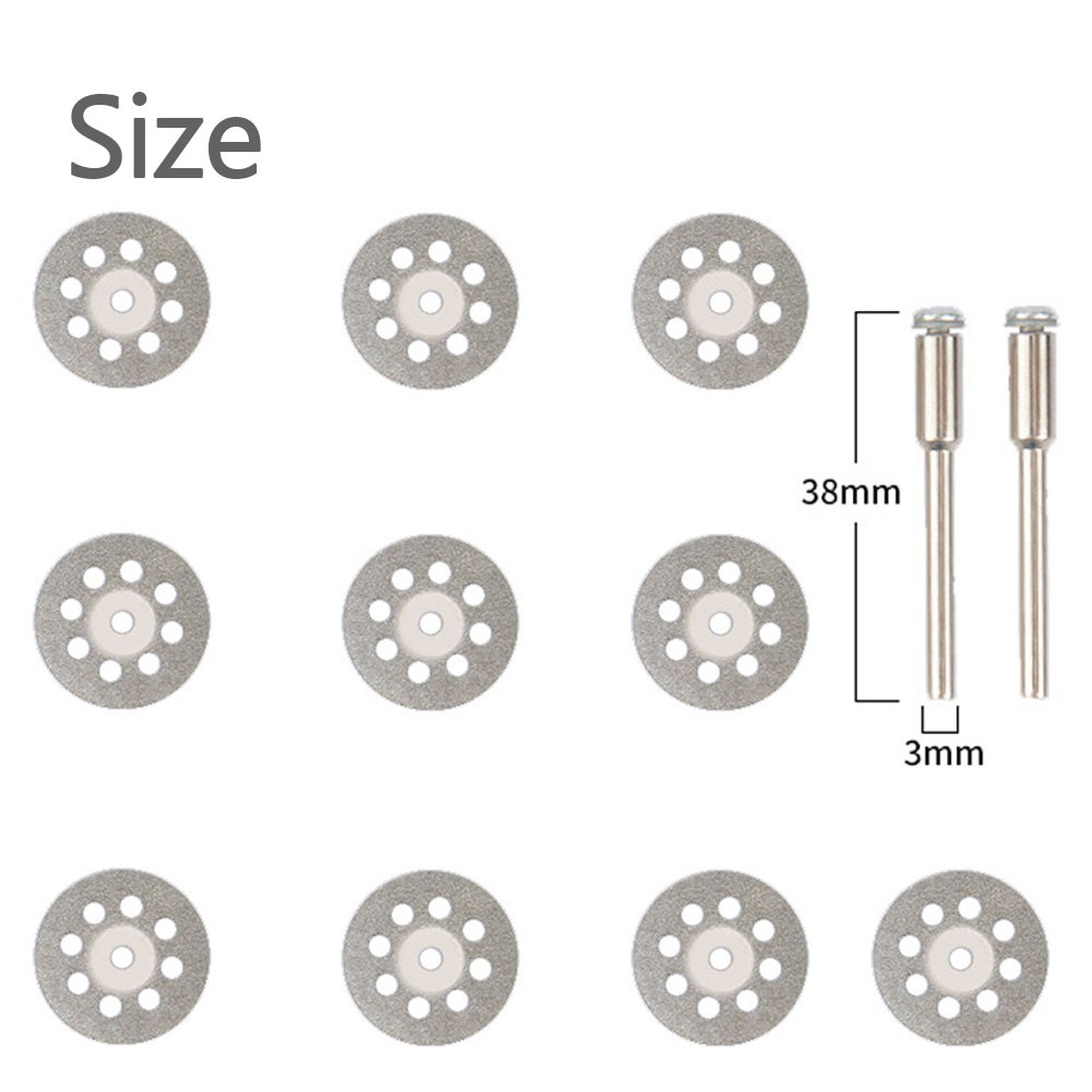 12x Diamond Cutting Wheel For Dremel Rotary Tool Die Grinder Metal Cut Off Disc For Dremel tools, rotary tools and mould grinders (with 1/8 inch collets) Suitable for glass, stone, tile, metal, brick, plastic, ceramics, concrete, fibreglass, plexiglass, epoxy, resin, acrylic and more. Diamond cut-off wheels are suitable for glass cutting, tile cutting, metal cutting, stone processing, plastic cutting Diamond cut-off wheels for smooth, precise cuts - vented design for ultra-fast cutting Package Includes 10 x 22mm cutting discs 2 x Mandrel On Aug 22, 2024 at 03:36:46 PDT, seller added the following information: