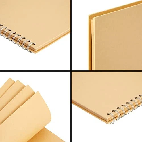 12x12 Album for Scrapbooking Hardcover, Kraft Paper Material Spiral Bound Ske...