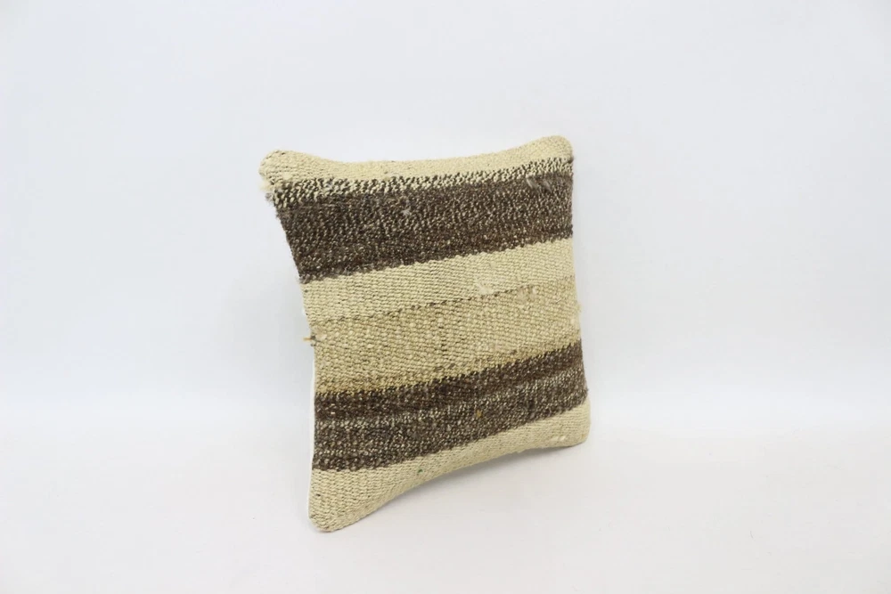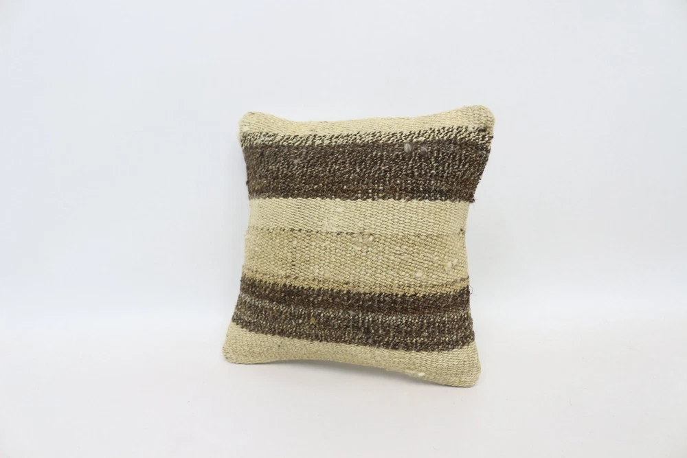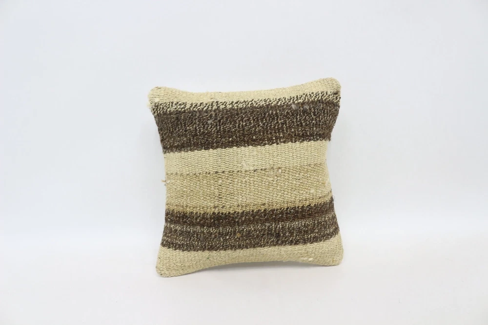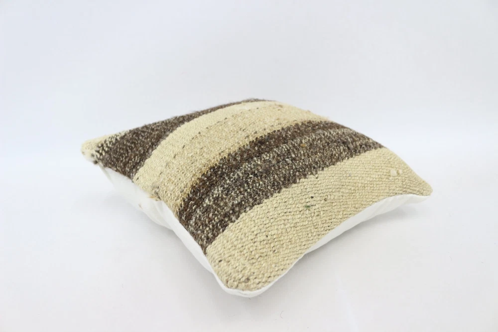 12"x12" Beige Cushion Case, Antique Pillows, Ethnical Kilim Rug Pillow