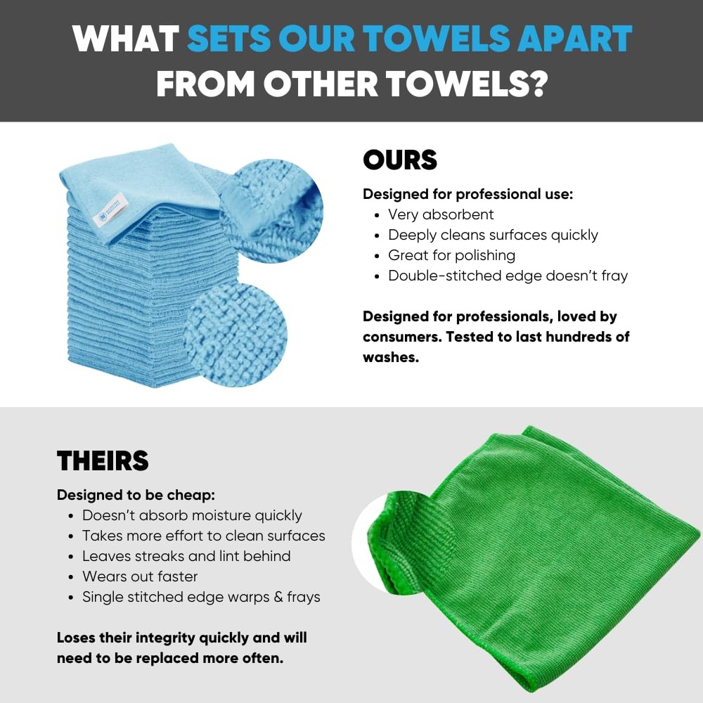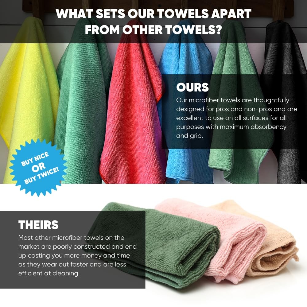 Our 12” x 12” All Purpose Microfiber Towels are versatile and reliable cleaning agents. They effectively clean anything, all the while being easy to wash, and use again at peak performance. Our towels were made to last. With a secure stitched exterior & plush & dense microfiber designs, our microfiber is the most durable all-purpose towel in its class. We ensure it will not fray in the wash, have its corners round, or tear when using. When cared for properly, our microfiber towels are made to last hundreds of washes. MICROFIBER MAGIC — Manufactured with high-quality microfiber to act like a magnet on dust and dirt. Clean surfaces quickly and efficiently without leaving streaks or scratches behind. MULTIPURPOSE USE — Effectively picks up difficult spills and substances, such as oil & grease. Works on almost any type of surface, from light to heavy-duty cleaning! COLOR-CODED CLEANING — Available in several colors so you can confidently color-code your cleaning routine. Use different colored towels for different surfaces in your or your client's home. GREEN CLEANING — Cleans with just water. A greener way to clean that saves you from spending extra on cleaners. DURABLE CONSTRUCTION — Made with firmly stitched edges and proven to last hundreds of machine washings. Save money on replacement towels! Loved by cleaning pros, so we know you’ll love them too. Order Today.