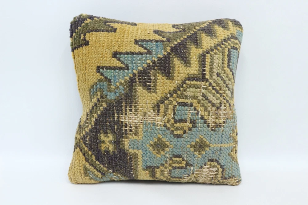 Kilim Pillow Details: All of my beautiful pillow covers or cushion cases are designed and made by me. I am making my throw pillow covers from handmade vintage rugs, Turkish rugs. Therefore, each of my vintage kilim pillowcase is one of kind. These cushions covers are piece of an art. The size of this pillow is 12 x 12 inches or 30 x 30 cm. The front side of this decorative pillow cover, cushion cover is wool on wool vintage kilim rug. The backside of this throw is high quality cotton fabric with a high quality zipper. This listing has 2 option for this handmade pillow. You can choose with insert or without insert. The listing photos is with insert in the pillowcase which is just for demonstration purpose. All of my vintage Turkish rugs have been professionally washed before I cut them as pillow case or cushion case so these kilim covers are 100 posent clean and ready to use. Due to the age and handmade nature of these vintage rugs, there might be imperfections and flaws that are not considered defects. This is a piece of a handmade vintage rug with minor signs of wear consistent with age and use that give it an antique look. You can see the condition of the rug pillow clearly in the detailed photos. I am going to ship your order of decorative pillow as soon as possible. I usually ship in the next day with DHL Express or FedEx which will deliver the kilim pillow, cushion cover just in 3-5 business days. It is my responsible until you receive pillow cover or pillow cover with insert at your door. If the pillow cover or insert get lost or damage during the shipping, I will ship the new kilim pillow cover or pillow insert for free as soon as possible. I take photos of my throw pillows indoor with professional camera which shows the real colors. The photos of these Turkish pillow covers are not altered. Keep in mind the colors of the rug vary slightly in different lights. Please contact to me for additional photos. I take the photos of my vintage rugs outside with daylight to show you the real and natural colors. My photos are not altered. Keep in mind the colors of the rug vary slightly in different lights. Please contact to me for additional photos. SATISFACTION GUARANTEED for your order in my shop. Your SATISFACTION is the most important to me. Please write me if you have any question or if you don't like anything from my pillow covers, cushion covers. If any reason, you are not happy from your Turkish pillow cover, I accept return without any hassle. Please read my shop policies for details. This cushion case or pillow cover can be used as decorative throw pillow, gift pillow, Christmas pillow case, bedding pillow, lumbar pillow, sofa pillow, bohemian pillow, boho pillow. You can find in any kind of Turkish kilim pillow cover in different design such as striped pillow, embroidered pillow, and geometric pillow.