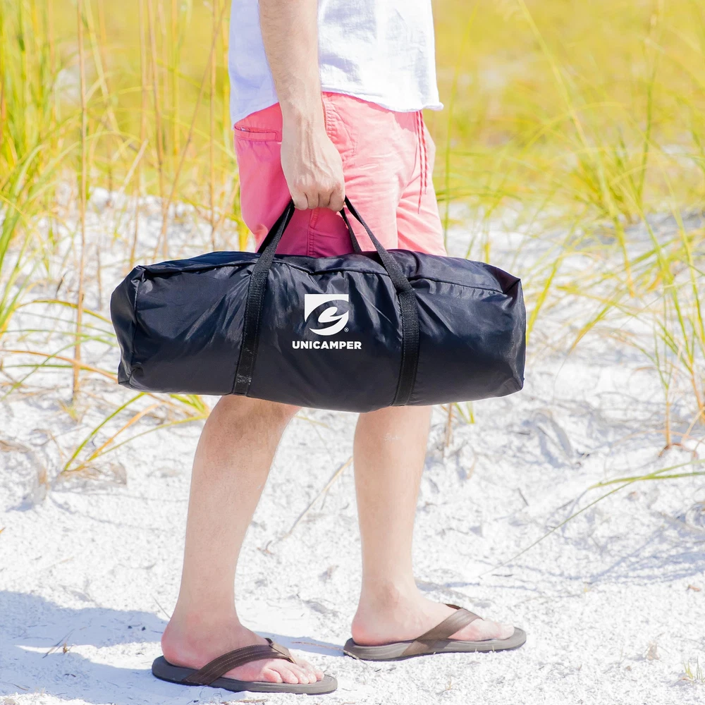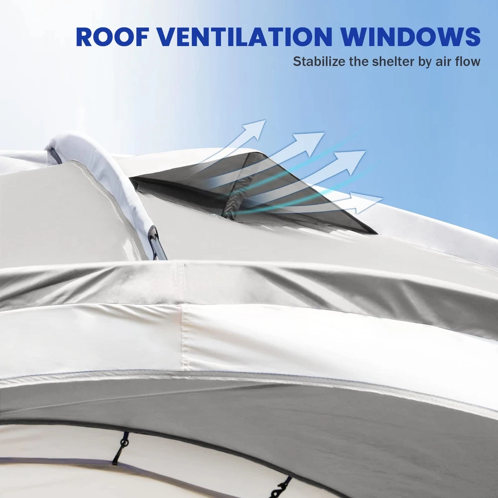 Roomy Shelter: The 12-ft canopy provides 144 square feet of activity space. With a height of 90 inches, it comfortably accommodates 7-10 people Sun Protection: camping tent features UPF 50+ to block harmful UV rays and prevent sunburn. The 195T taffeta with an 800MM coating ensures privacy by making the tent opaque from the outside Cool and Breathable: sun shelter features 4 large doors and comes with 2 sidewalls that can be freely combined. The top ventilation openings ensure continuous airflow Waterproof: camping shelter seams are professionally treated with a PU coating to prevent leaks, ensuring that water does not enter the tent Stable and Windproof: To ensure the tent's stability, we provide 12 ground stakes and 4 guy ropes to secure the canopy, keeping the tent stable even in strong winds Brand Promise: We offer a one-year after-sales guarantee. If you have any issues or need additional accessories, please let us know