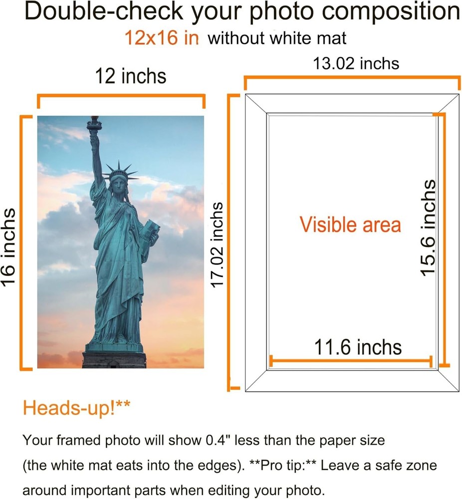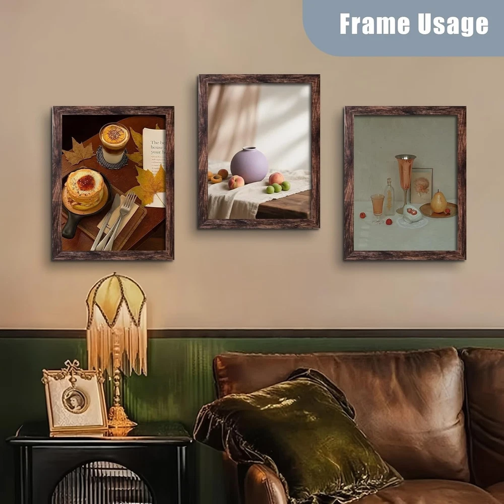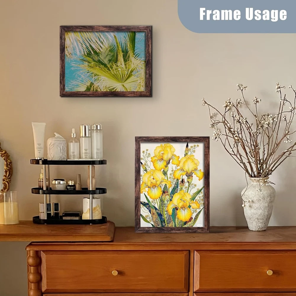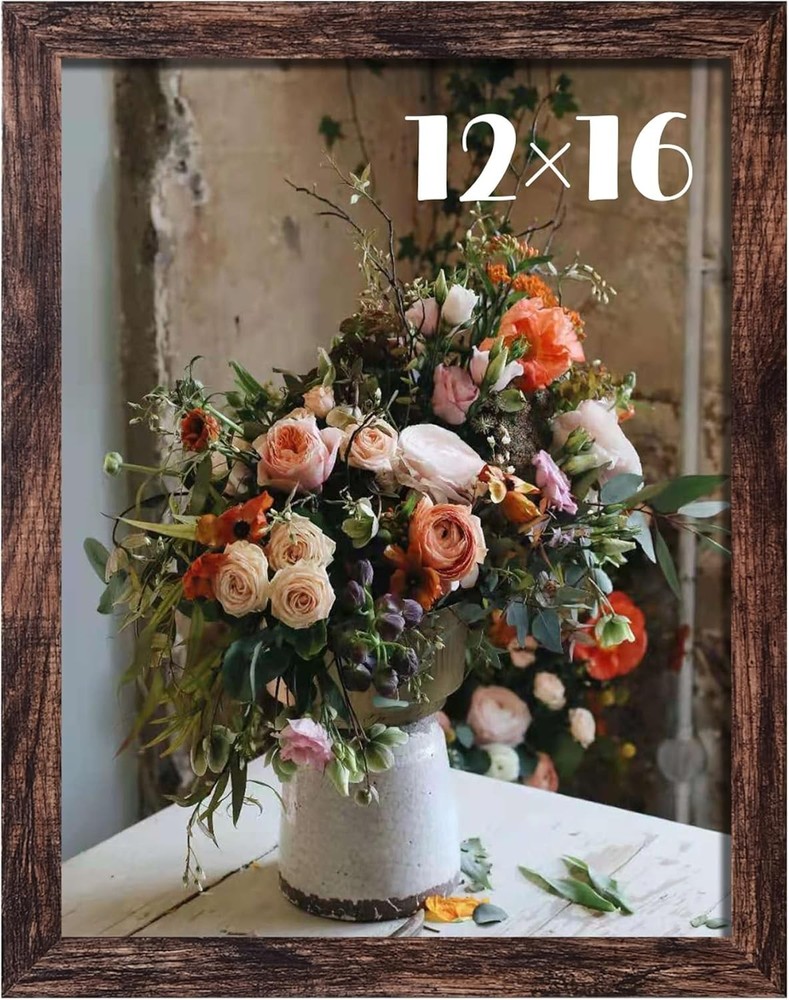 12x16 Frame Wall Hanging Picture Frames, Brown, 1 Pack Quality made: This 12x16 picture frame is made of engineered wood, not solid wood, pack of 1, can display various types of photographs, such as family portraits, wedding pictures, travel memories, or artistic shots, it can be used to showcase and preserve diamond paintings as a decorative display piece. Size: The frames size is 12"x16" to hold a standard 12"x16" photo. The viewable area is intentionally " smaller ("") to ensure your photo fits perfectly with no distracting white borders or gaps. This is a professional framing technique called 'matting' without the mat Easy to use: The 12 x 16 frame does not come with a standing support bracket, so it must be wall-mounted or leaned against a wall for display horizontally or vertically. NOT INCLUDE installation accessories. Treasure Your Memories in Timeless Elegance: Our frames don’t just display photos, they transform moments into art, blending cherished stories with your home’s decor. Protect your memories while adding a touch of sophistication to every room. Acrylic Protection: Lightweight and user-friendly, remove the protective film from both sides before use. If you have any questions, please feel free to contact me.