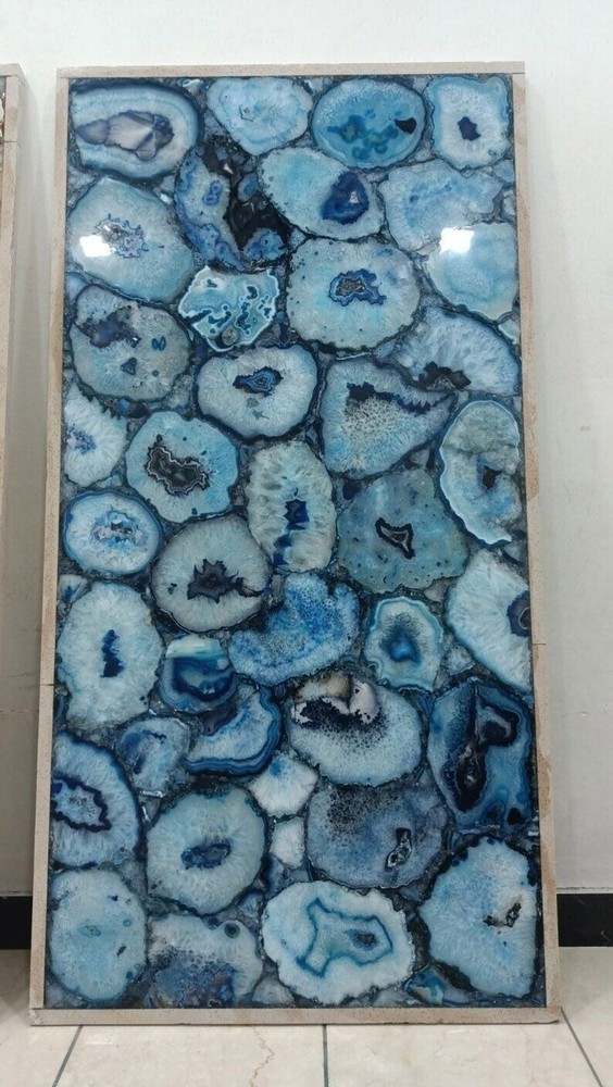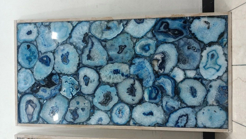 Welcome To Stone-Craft- Creations Shop Description Very unique Art by Indian Artist ,Coffee/Side Table top Used Material: Natural Agate Stones Arts Size: 24"x18" Inches Color: As Photo Shape: Rectangle Pattern: Handmade Room: Bedroom, Dining Room, Hallway, Home Office/Study, Kid’s Bedroom, Kitchen, Laundry/Utility Room, Living Room,Patio, Playroom Packaging: Wood & Foam Export Packing Shipping: Air Can Be customize ,Please Message us your desired Size 1. It can be used as a Dining Table, Guest table, coffee table, center table top in show room as well as a gift for your loved ones. 2. The table top is made in Agra India & fully handmade. 3. The top will be delivered by FedEx or DHL free of cost door to door. 4. If there is any local tax,custom duties or Vat will be paid by the buyer at the destination. 5. The parcel is dispatch with proper packing & fully insured covering all kind of risk. 6. To maintain the table top is simple soap & water & dry cotton cloth. 7. If You Are Looking Something Customize, Let Us Know We Will Make For You As Per Your Design, Size & Shape. 8.Table top does not includes any wooden, marble stand or base if you like to buy marble or wooden base or stand that will be charged extra. Marble Agate Table Tops We are Manufacturer & Exporter of marble agate table tops. These marble agate table tops have different shapes like Round Table top, Octagonal Table Tops, Rectangle / Dining table tops, Square Table tops, Chess Table tops, Taj Mahal Table tops, Custom Designs Table tops also make marble Table top Base and Stand. Then we can be used as dining tables, coffee tables, Center tables, conference tables, chess boards, reading tables, bar tables , Garden table, side and corner tables or any other use as per the indoor and outdoor decor. They can also be placed outdoors in the garden, as marble is stain free, offers great resistance to the forces of nature, and can withstand heavy temperatures. We also meet customized requirement and offer our marble table tops at industry leading prices. About Agate Stone- Agate is a rock consisting primarily of cryptocrystalline silica, chiefly chalcedony, alternating with microgranular quartz. It is characterized by its fineness of grain and variety of color. Although agates may be found in various kinds of host rock, they are classically associated with volcanic rocks and can be common in certain metamorphic rocks. Ancient use of agate stone Agate is one of the most common materials used in the art of hardstone carving, and has been recovered at a number of ancient sites, indicating its widespread use in the ancient world; for example, archaeological recovery at the Knossos site on Crete illustrates its role in Bronze Age Minoan culture Types Of Agate 1. Fortification Agate This is the most common and distinctive type of agate. In these agates, bands crystallized into concentric layers that more or less follow the shape of the cavity. The banding resembles an aerial view of a fort 2. Water-Line Agate (also called water-level or onyx) During its formation, silica-rich solution either entered the cavity slowly laying one band at a time, excess water drained out leaving a small amount of silica to settle out into separate bands, or the vesicle filled under low pressure. In any case, the silica crystallization in water-level agates is controlled by gravity in one orientation, forming a stack up of parallel bands. 3. Shadow Agate Some agates exhibit a shadow effect in which there is what appears to be movement across the agate layers when the specimen is rocked back and forth (or your orientation to the specimen moves). This optical effect only occurs when there are alternating translucent and opaque bands. It is caused when light goes into the agate, but is not reflected out. 4. Tube Agate Tube Agate During the formation of some agates, parallel projections of tiny hair-thin mineral rods grow first within the silica gel, around which later the chalcedony agate micro-crystals form. In some cases the inclusions remain, but sometimes they weather away leaving hollow tubes that subsequently fill in with silica. 5. Eye Agates This mysterious agate characteristic is believed to be formed when most of the silica gel drains from the cavity, leaving only a droplet that “beads up” on the inside wall of the cavity. This droplet crystallizes into solid chalcedony “eyes”. In some cases, crystal growth will continue from this droplet in a manner similar to the formation of stalactites in caves. Later, the pocket fills in with the usual deposition of chalcedony microcrystals. 6. Plume Agate These agates initially had formations on their outside layer that formed prior to the deposition of chalcedony bands. They are filament growths of mineral inclusions that resemble ferns or feathers. 7. Geode Agate Geode Agate In some cases the supply of silica-rich water runs out before the entire cavity fills in. When there is a hollow center within a crystalline outer fill, the specimen is considered a geode. Not all geodes have agate banding, but many do. Also, the inner layers can form into several different types of silica mineral crystals and may even have other types of mineral crystals. 8. Moss Agate Moss Agate Moss agates have clusters of mineral inclusions that resemble plants, trees, or landscapes. Most moss agate inclusions are comprised of iron or manganese oxide. In some cases, the inclusions inhibit chalcedony banding allowing the mineral clusters free reign to grow within the silica gel. 9. Seam Agate Seam agates for in cracks within host rock, rather than in rounder pockets. The bands form in parallel rows that follow and fill in the crack or seam.