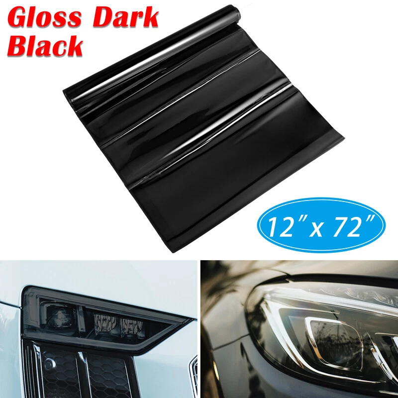 12x72 Glossy Dark Black Smoke Vinyl Film for Headlights Taillights Fog Lights