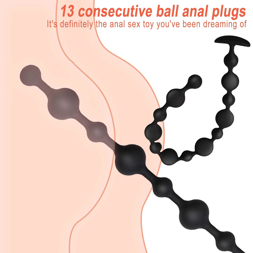 13 Balls Extra-long Anal Butt Plug Massager Prostate Vagina Sex Toys Adults US