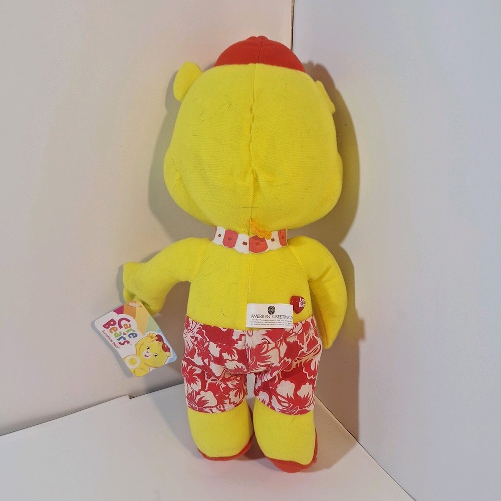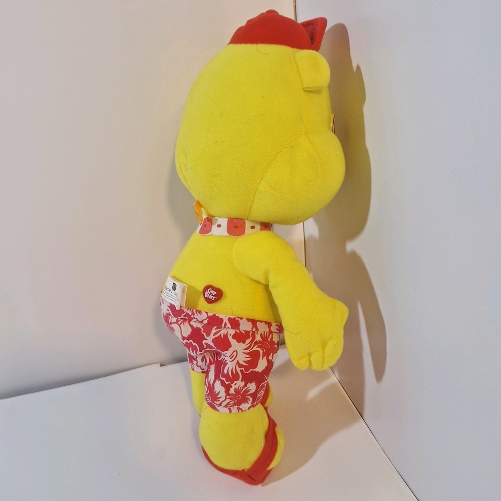 This 13" Care Bears Beach Funshine Bear in Sun Yellow is a delightful addition to any collection. Featuring the court jester crown and a retired design, this plush bear comes with a hat and is the perfect companion for all occasions. The vibrant yellow color and contemporary design make it a charming choice for fans of the Care Bears franchise. Made from a blend of polyester, plush, and cotton, this bear is sure to bring joy to both children and collectors alike.