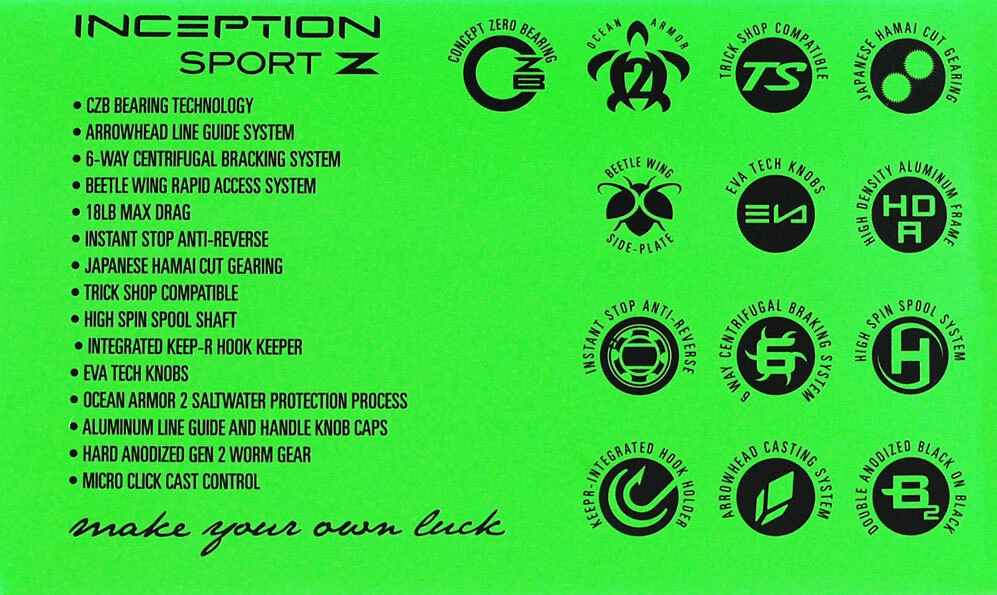 **13 FISHING INCEPTION SPORT Z 7.3:1 ISZ7.3-RH RIGHT HAND BAITCAST REEL **13 FISHING INCEPTION SPORT Z 7.3:1 ISZ7.3-RH RIGHT HAND BAITCAST REEL For anglers who aren’t afraid to stand out from the crowd, the 13 Fishing Inception Sport Z Casting Reel combines eye-catching cosmetics with unmatched performance. Packed with exclusive features that have never before been offered at this price point, the 13 Fishing Inception Sport Z Casting Reel is designed with second-generation Japanese Hamai cut gearing and CZB spool bearing technology, which promotes exceptionally smooth, extended casting. Emphasizing seamless operation throughout a variety of techniques, the 13 Fishing Inception Sport Z Casting Reel is highlighted by a 6-way centrifugal braking system and a beetle wing rapid access system that allows anglers to adjust brakes on the fly. The Arrowhead line guide also works to increase the fluidity of line release, while a micro click cast control gives anglers the ability to make fine adjustments and accommodate a wide range of bait sizes and weights. Promising exceptional strength and durability, the 13 Fishing Inception Z Casting Reel packs an impressive 18lbs of max drag and comes equipped with Ocean Armor 2 Saltwater protection for extended corrosion resistance. Trickshop compatible, so anglers can create a custom look, the 13 Fishing Inception Sport Z Casting Reel blends attention-grabbing cosmetics with a laundry list of exclusive technologies to create a reel that performs as well as it looks. FEATURES: CZB spool bearing technology 6-way centrifugal braking system Beetle wing rapid access system 18lb Max drag Instant stop anti-reverse Japanese Hamai cut gearing Trick shop compatible High spin spool shaft Arrowhead line guide system Integrated keep-r hook keeper EVA tech knobs Ocean Armor 2 saltwater protection process Aluminum line guide and handle knob caps Hard anodized gen 2 worm gear Micro click cast control SPECS : Model: ISZ7.3-RH Retrieve: Right Gear Ratio: 7.3:1 Weight: 6.9oz. Bearings: (2CZB + 5SSBB) + 1RB Line Cap. (Test/Yd.): 12/135 PAYMENT TERMS VISA, MASTERCARD, AMEX, OR DISCOVER PAYPAL APPLE PAY GOOGLE PAY PAYMENTS MUST BE MADE IN FULL WITHIN 7 DAYS SHIPPING TERMS ALL PAID ORDERS SHIP WITHIN 1 BUSINESS DAY INSURANCE IS INCLUDED IN SHIPPING PRICE COMBINED ORDER POLICY ORDERS ARE COMBINED NIGHTLY AFTER END OF ALL AUCTIONS. DO NOT PAY FOR INDIVIDUAL ITEMS ENDING ON THE SAME DATE IF YOU WANT THE ORDER COMBINED. ALLOW US TIME TO SEND YOU A COMBINED INVOICE. ORDERS THAT ARE PAID FOR ON DIFFERENT DATES ARE NOT OUR RESPONSIBILITY TO COMBINE. ITEMS MUST BE PAID IN FULL WITHIN 7 DAYS FROM THE END OF 1ST AUCTION. COMBINED ORDER PRICING BAITS - EACH ADDITIONAL AUCTION $1.00 REELS - EACH ADDITIONAL AUCTION $1.00 RODS* - EACH ADDITIONAL AUCTION $1.00 *ALL RODS WILL ONLY COMBINE WITH RODS OPERATING HOURS BUSINESS HOURS ARE MONDAY - THURSDAY 9AM-5PM CENTRAL TIME & FRIDAY 9AM-3PM CENTRAL TIME, EXCLUDING HOLIDAYS EBAY MESSAGES ARE ANSWERED DURING NORMAL BUSINESS HOURS DUE TO THE OVERWHELMING AMOUNT OF ONLINE ORDERS WE ARE EXPERIENCING, LONGER THAN NORMAL RESPONSE TIME TO EMAILS MAY OCCUR. PLEASE BE PATIENT.