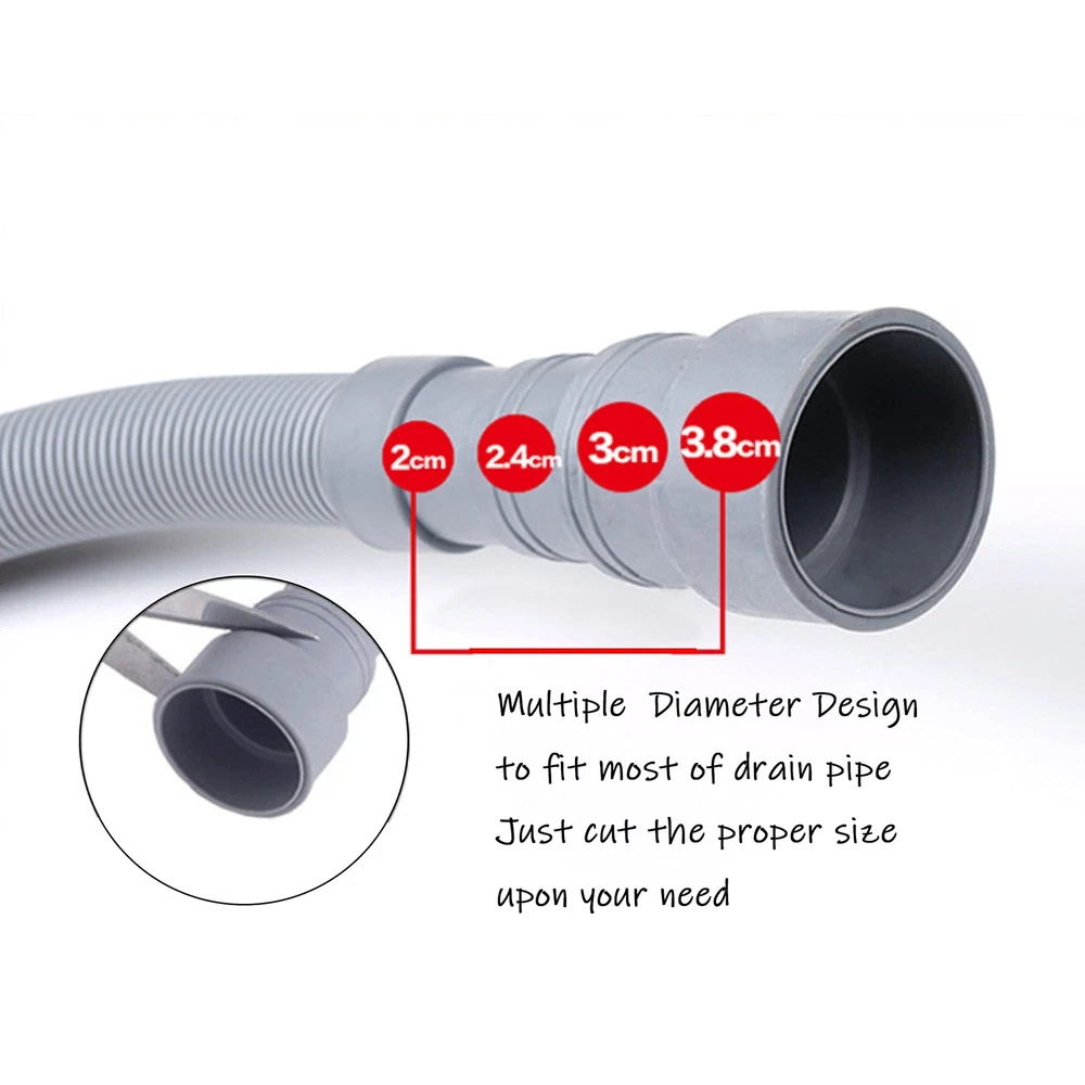 1. Compared with the drain hose made from common materials on the market, our discharge hose is more remarkable. With corrosion resistance, good flexibility, high strength, resistance to extreme pressure and strong bearing capacity, it is more durable and has longer service life. 2.The installation is simple, if it is directly used in the water outlet of the washing machine, then directly insert the hose into the water outlet of the washing machine; if it is to extend the drain pipe, connect the two hoses with the adapter, you can not add the card hoop, but for added strength, you can add. 3. Washing machine drain pipe can be a good fit with the adapter, no water leakage. 4. Formed outlet end fits 1-Inch to 1-1/5-Inch stub outs on automatic front load washing machines. Insert directly into the floor drain or wall mounted discharge outlet pipe if available, it’s better to hang over desired overflow area. The Perfect Combination: The end of the washing machine drain hose fits perfectly with the washing machine outlet. The extended adapter also allows the two tubes to be perfectly combined, without tools, and can be safely connected without worrying about leaking or flooding. Easy to Install: just insert the forming outlet into the end of the hose without any tools. If you are using it for extended hose, simply connect the adapters and connect them without removing the previously connected drain. For even more fixing, you can also add a clamp. Universal Size: 13 feet washer drain hose for automatic front loading washers with outlet diameters from 1-1 / 5" (30 mm). The adapter has a diameter of 21 mm and is suitable for all water pipes that are directly 20 mm inside. Fitted with 18-32 mm clamps for a stronger connection. Premium Material: This durable, ultra-flexible drain hose is made of premium EVA, high pressure resistant, non-toxic and anti-aging. Extended Drain Hose Kit: The drain hose kit includes a 6 feet hose, extension adapter and two clamps. If your home washing machine drain and dehumidifier hose are not long enough or you need to replace the drain, you can choose our drain hose.