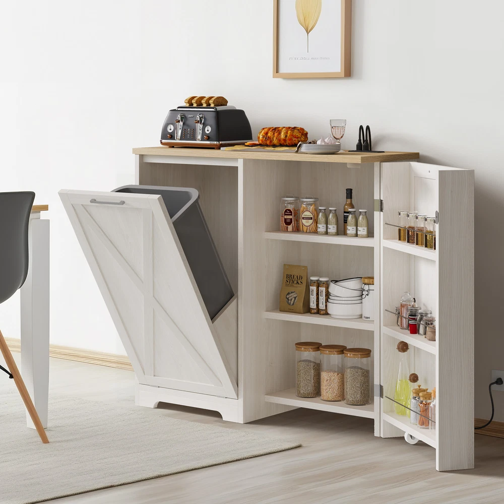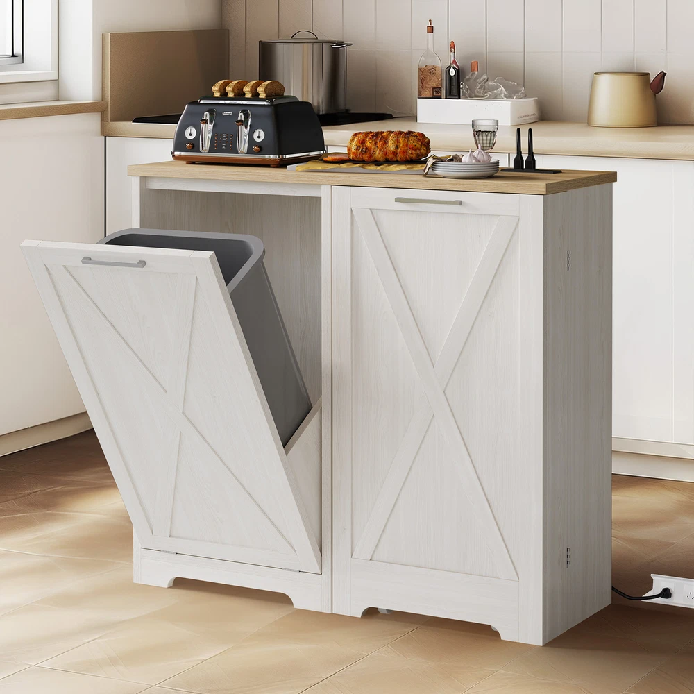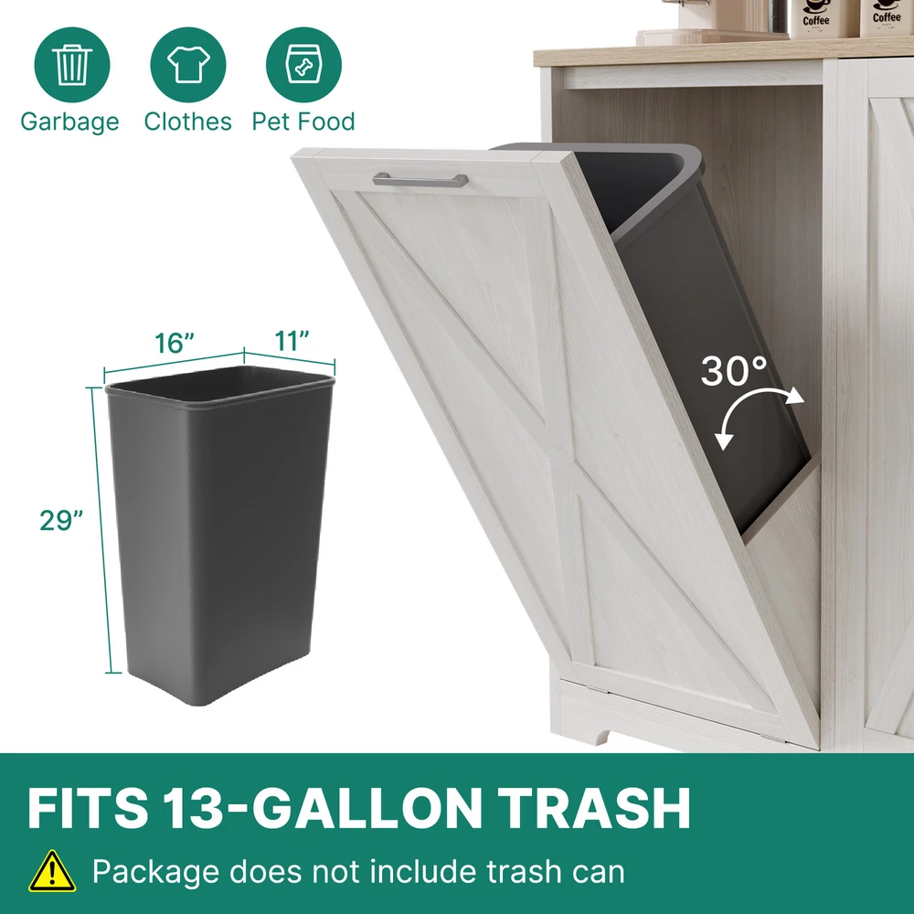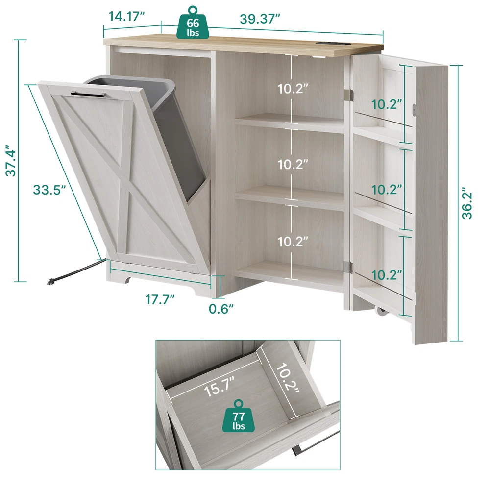Product Description Specifications: Color:White Size: 14.17"D x 39.37"W x 37.4"H Item Weight: 80.25 Pounds Material: Engineered Wood Number of trash cans: Single Capacity: 13 Gallons Room Type:Dorm Room,Kitchen,Laundry Opening Mechanism: Tilt Out Shape: Rectangular Assembly Required:Yes Package Included: 1 x Tilt Out Trash Cabinet (Not included T rash Can ) Product Details Shipping 1.The shipping rates listed are only for residential or commercial destinations in the continental 48 United States. All international sales will go through eBay Global Shipping Program.please ask us if there are any questions. 2.We only ship the item to the address that is sent to us at the time of checkout. Please verify the correct shipping address in your PayPal account before making your payment. If we ship your item to an old or invalid address and you are not able to locate the item, we are not responsible for shipping a replacement. 3.Currently, we do not ship to Hawaii, Alaska, Puerto Rico,APO/FPO/PO Boxes. 4.We use USPS, UPS & FedEx as shipping method. 5.Payments cleared before 12 PM PST, will be shipped on the same day. Payment 1.We accept PayPal and all forms of credit card. 2.We will only ship to the confirmed Paypal shipping address given with the payment. 3.We do not offer local pick up service. Return 1.30 days Money Back Guarantee. 2.If any package that needs to be returned, please contact our customer service first to receive a RMA form. 3.All return items MUST be in brand new condition. About Us 1.Specialized in aftermarket auto parts since 2012, we source and work directly with professional manufacturers to provide the highest quality parts at the most economical prices. 2.We also has over 5 years of shipping experience with FedEx and USPS . Our Packing Quality is Guaranteed , Item Ship-ping is timely!