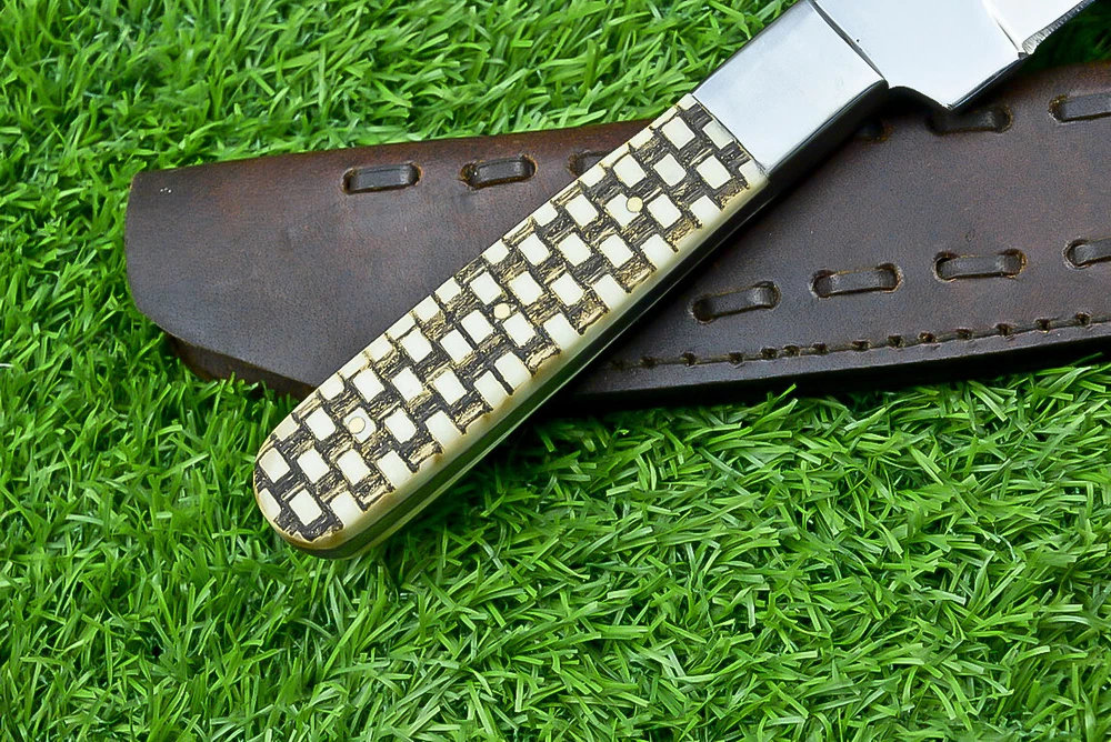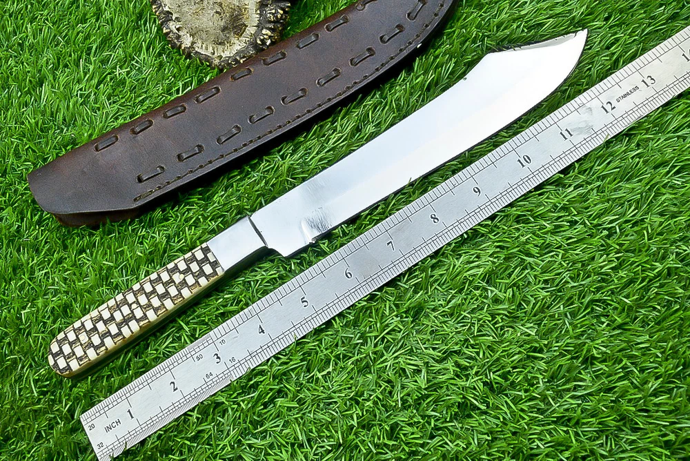 EXCLUSIVE HANDCRAFTED J2 STEEL BLADE HUNTING KNIFE SKINNING KNIFE, BOWIE KNIFE, CAMPING KNIFE EDC Product Details: Overall Length: Approximately 12.00" inches Blade Material: J2 Steel Blade Hardness: 54-58 HRC Blade Thickness : 4mm Size Verification: To help you easily determine the size, we've included images with a scale for precise dimension reference. Thank you for your understanding. We appreciate your consideration. Handle Material: Bone with hand casted steel bolster Included Accessories: Sheath For International Customers: We kindly advise our international customers to familiarize themselves with their country's regulations prior to making a purchase. If customs in your region request customs duties, please be prepared to cover these costs. Regrettably, we cannot assume responsibility, nor issue refunds in such cases. AGE LIMITATION: Please note that we exclusively sell knives to individuals who are 18 years of age or older. Additional Details: Leather Sheath (if pictured): Rest assured, this item comes with a superior-quality, sheath. Crafted with meticulous hand-tooling and stitching, it exemplifies fine craftsmanship and is designed for exceptional durability. The added stitching ensures it withstands years of demanding use, providing reliable protection for your knife throughout its lifetime. Care and Maintenance: When necessary, use a Diamond Wet Stone or a superior sharpening tool to maintain a 20-degree blade edge. After use, clean the item with soap and water, ensure thorough drying, coat it with gun oil, and store it separately from the sheath. Leather absorbs moisture from the air and can lead to blade rust if stored improperly. Customer Feedback: Your satisfaction and feedback are of utmost importance to us. We genuinely appreciate your positive reviews! When assessing shipping time, please consider international transit. Your recognition bolsters our confidence to enhance our services. If you encounter any issues with your order or product dissatisfaction, please reach out to us first. We are committed to resolving any concerns to your satisfaction and kindly request you not to leave neutral or negative feedback. Payments & Returns: All accepted eBay payment methods are available for this purchase. Our return policy typically extends to 14 days. Shipping and Handling: We offer free shipping on all our products (In the USA) Tracking Info: The buyer will receive the tracking number via email (if available). You can also track the shipment in the "Order Details" section on eBay. USPS UPS DHL updates tracking information nightly (if available). Contact: Feel free to contact us anytime via eBay messages. We are dedicated to responding to your inquiries within 24 hours and providing the best possible assistance.