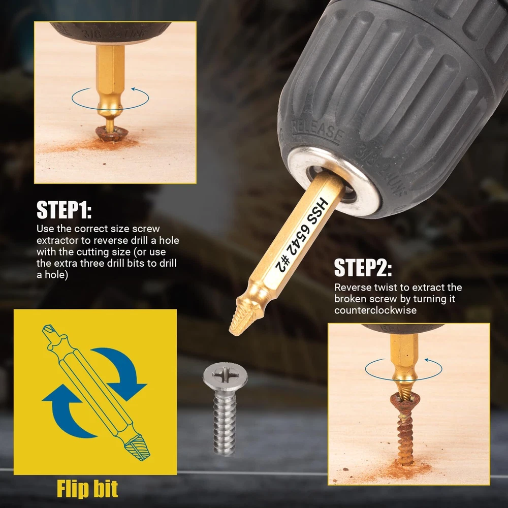 13 PCS Easy Out Screw Extractor Left-Hand Drill Bit Set for Damaged Screws