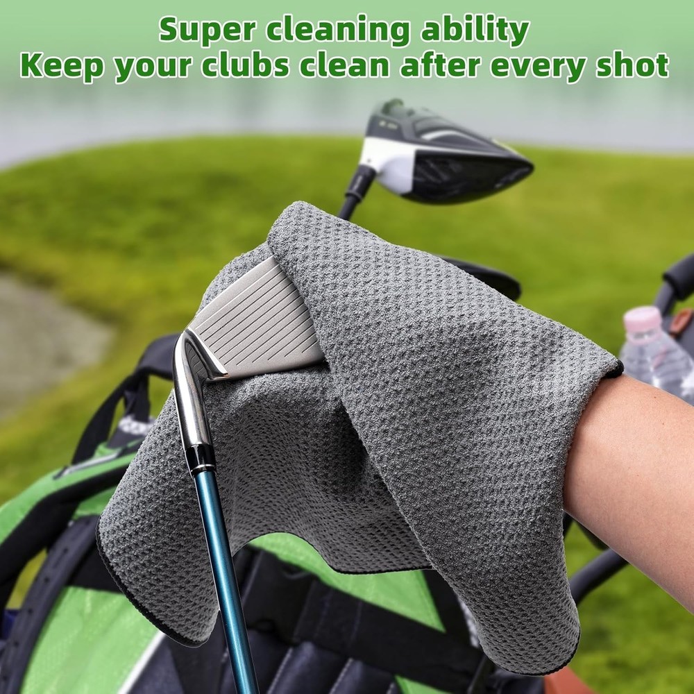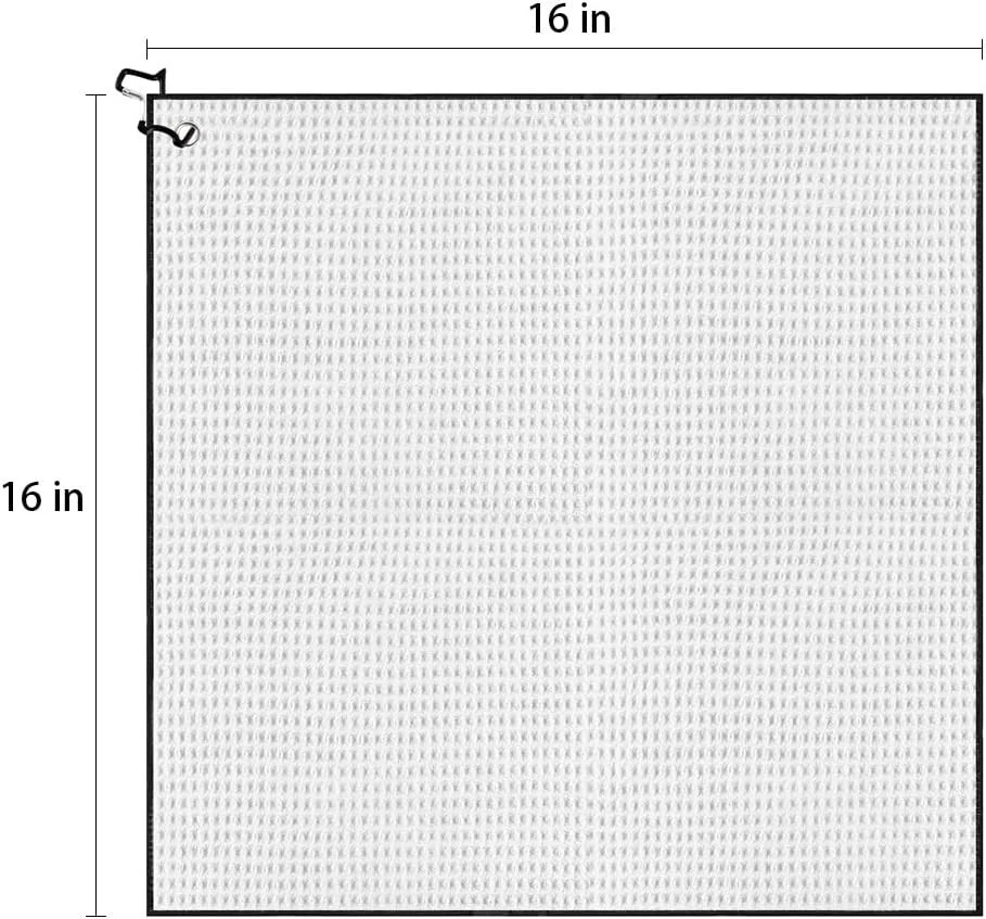 Blue/Black/Gray BRAND NEW Convenient Golf Towel:Each golf towel has dimensions of 16 inches by 16 inches, providing sufficient area for cleaning while still being small enough to conveniently fit in your golf bag without occupying excessive space. Microfiber Fabric Golf Towel:Crafted from microfiber material, our trifold golf towel is not only soft and highly absorbent but also effectively removes dirt, ensuring that your golf clubs, balls, and hands stay dry quickly during your game. Versatile Carabiner Clip: Each golf towel is fitted with a useful clip, which enables effortless attachment to either your golf bag or belt loop for prompt accessibility. This aspect boosts the towel's adaptability and ease of use during your time on the course. Stylish Waffle Weave Design:Stylish Waffle Weave Design:The waffle weave design not only contributes a stylish element but also expands the towel's surface area, improving its ability to clean effectively. This unique pattern can be rubbed into grooves on golf balls and grooves on clubs, and it can clean your sunglasses without leaving streaks. Great Value 3 Golf Towels:We've carefully selected three stunning color combinations that are not only the ideal size but also highly resistant to stains: black, blue, and gray. This gives you more options to coordinate with your golf bag! These make for excellent golf gifts! White 16" x 16" Microfiber Material. The Waffle Pattern helps clean balls and club heads better. Microfiber Material absorbs less water than cotton, easier to wash and carry. Clip conveniently attaches to your golf bag and prevents lost towels. Golf towels come in many styles to match your bag, club, and favorite team. THANK YOU