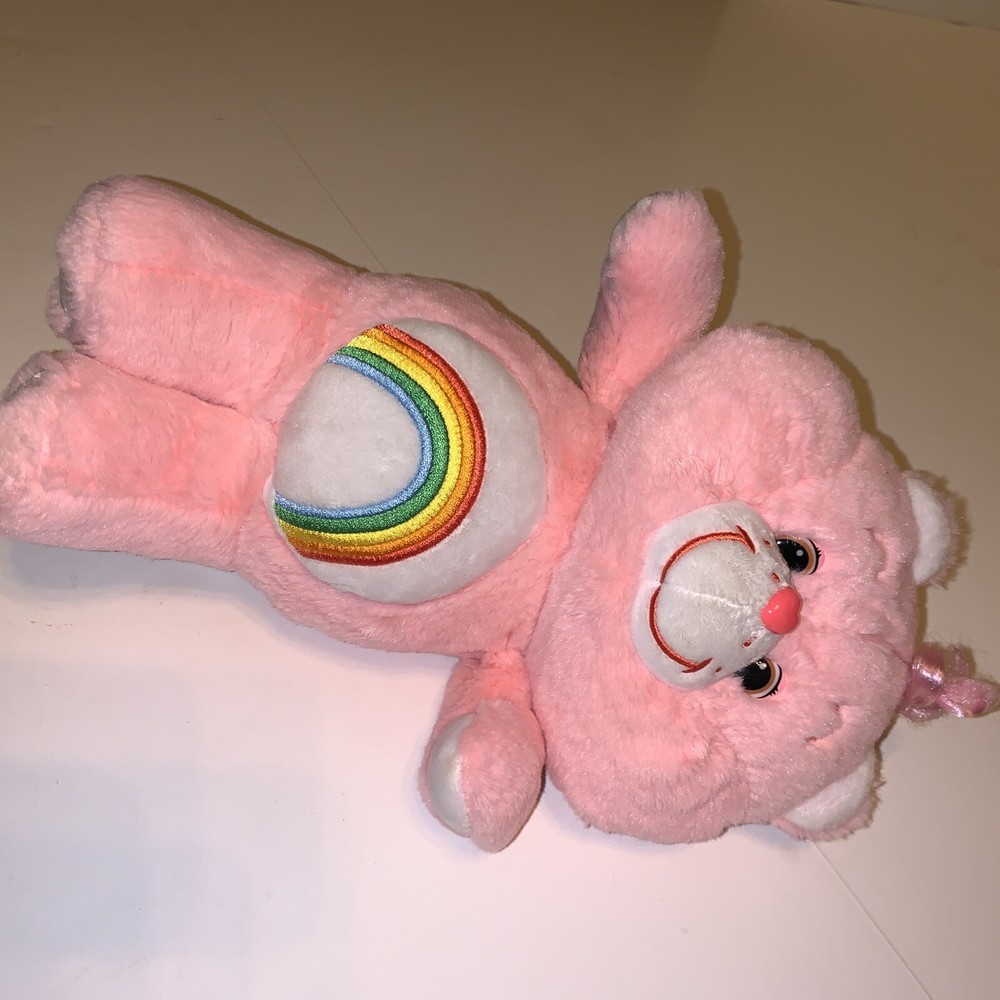 Care Bears Pink Cheer Bear Rainbow Plush Stuffed 13".