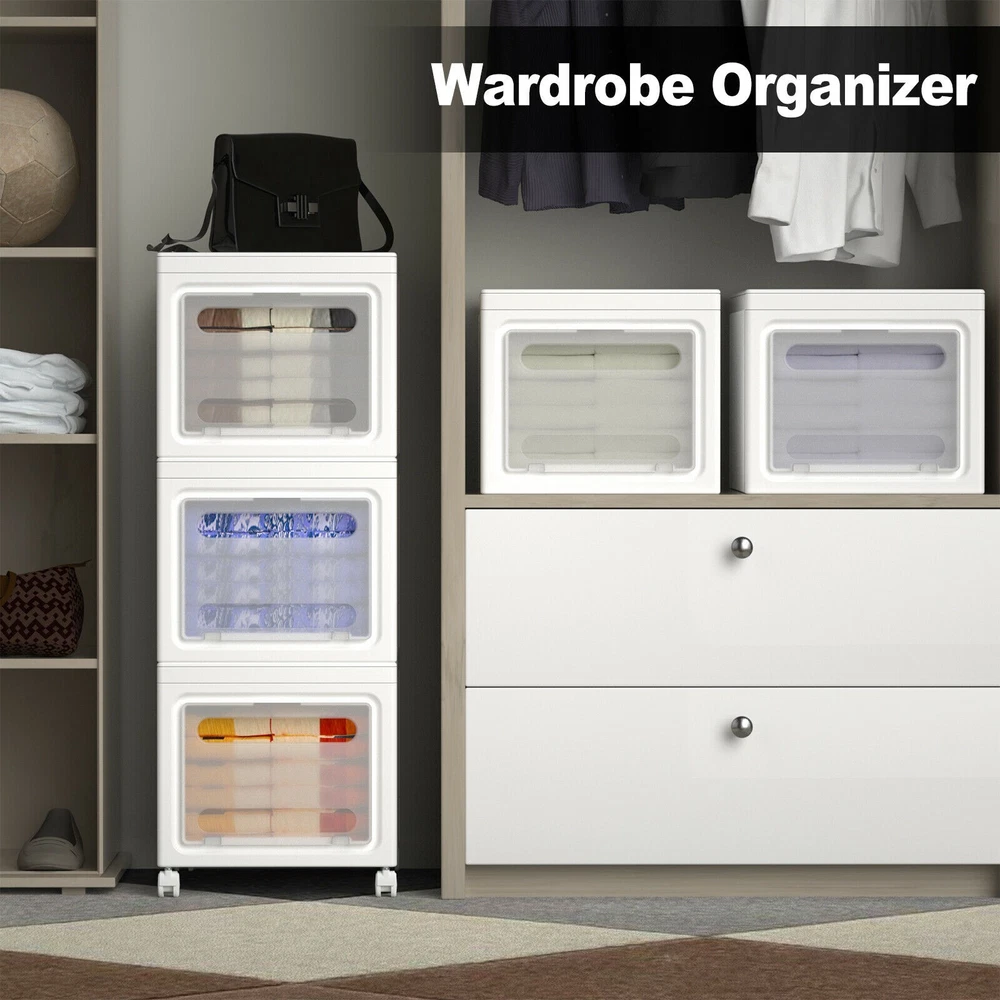 $ 23.233-Layer Foldable Storage Rack Cabinet Movable Storage Box Organizer