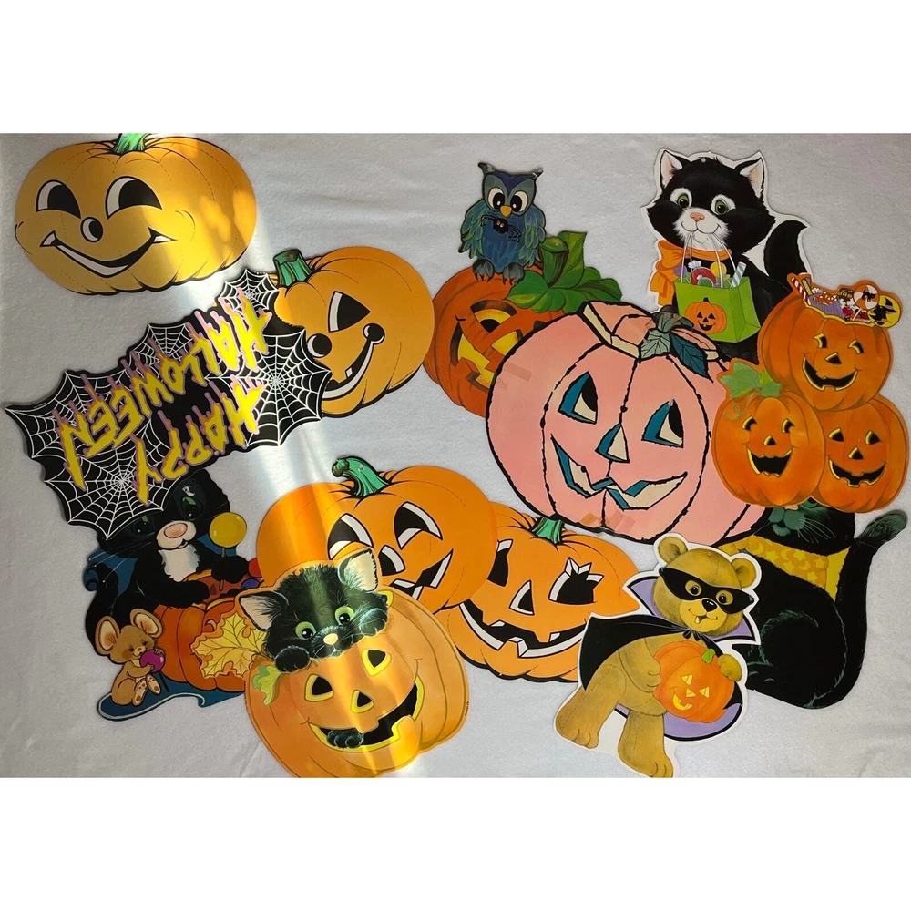 Lot Of 13 Vintage 1970s - 1990s Halloween Dye Cuts Used to New Cond Beistle Eureka. All in various conditions, some appear new. Some are double sided. Most of the dye cuts are Beistle and Eureka. Others are brands I am unsure of. From my personal collection.