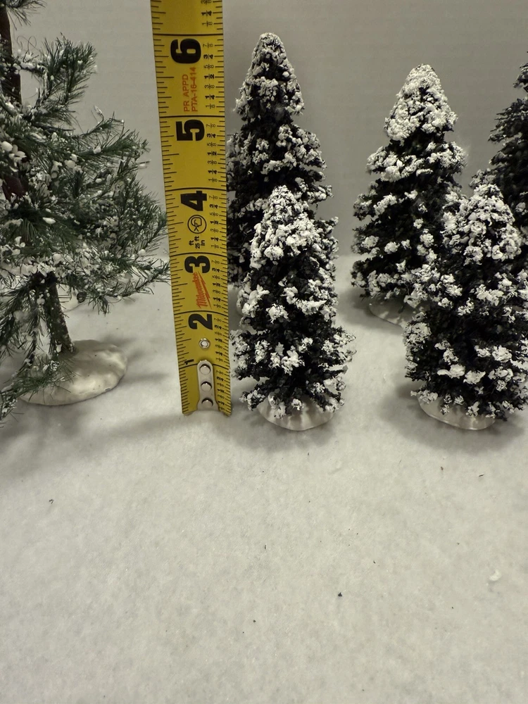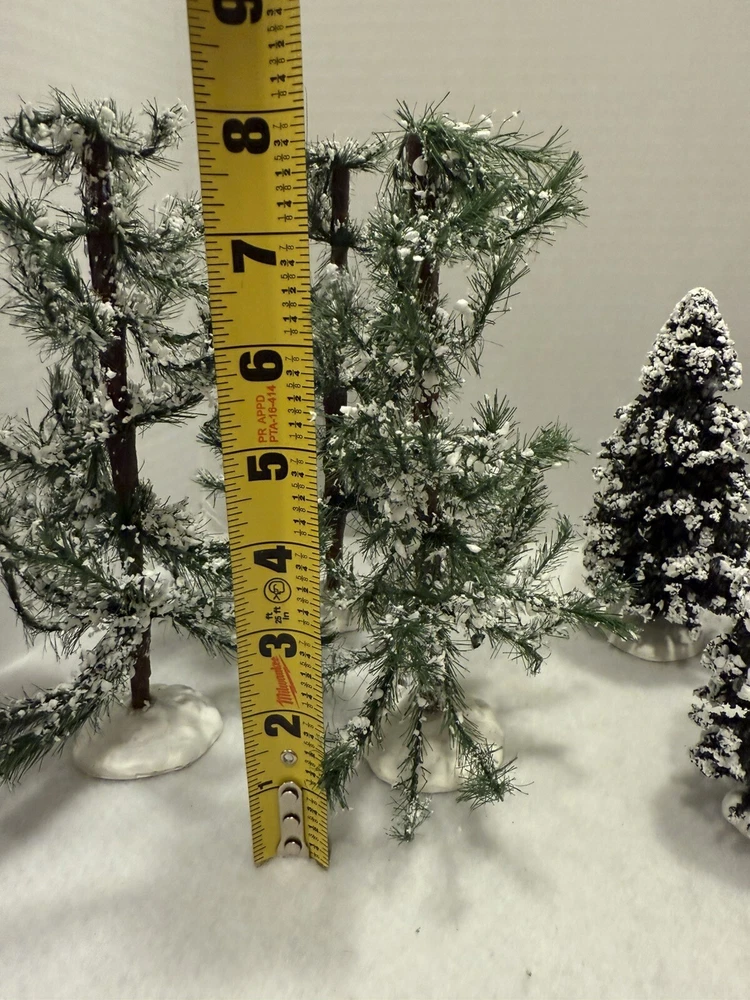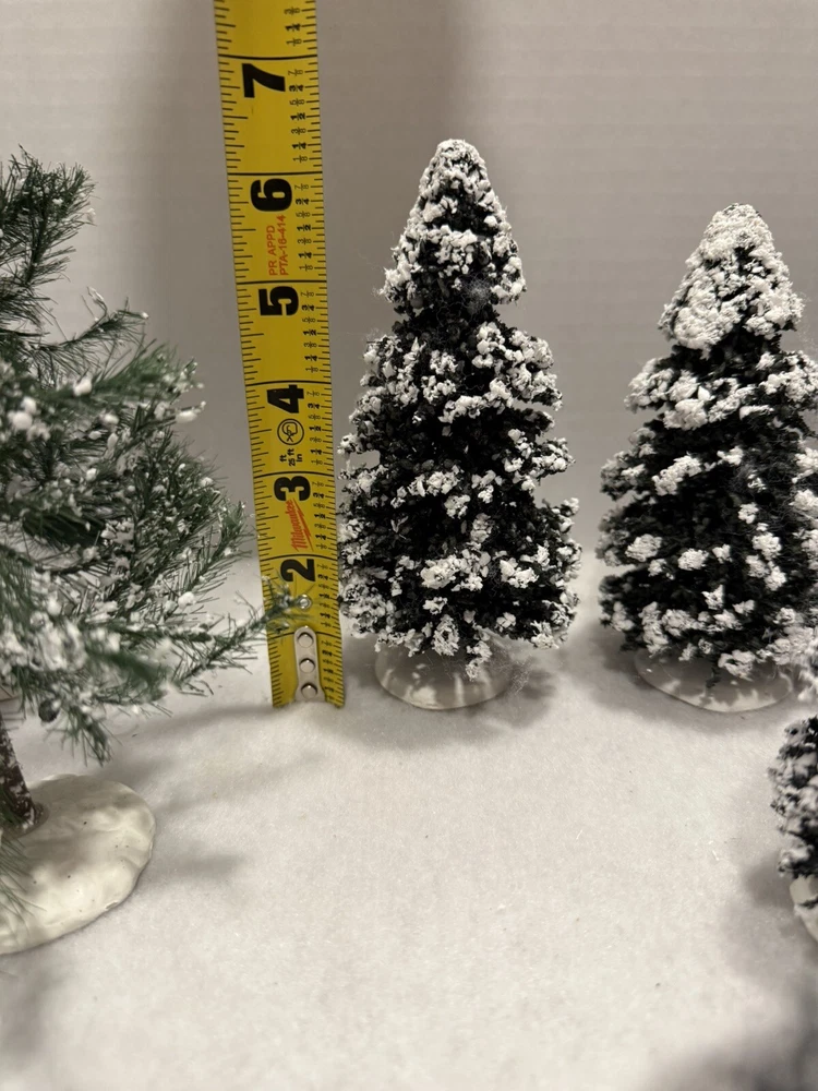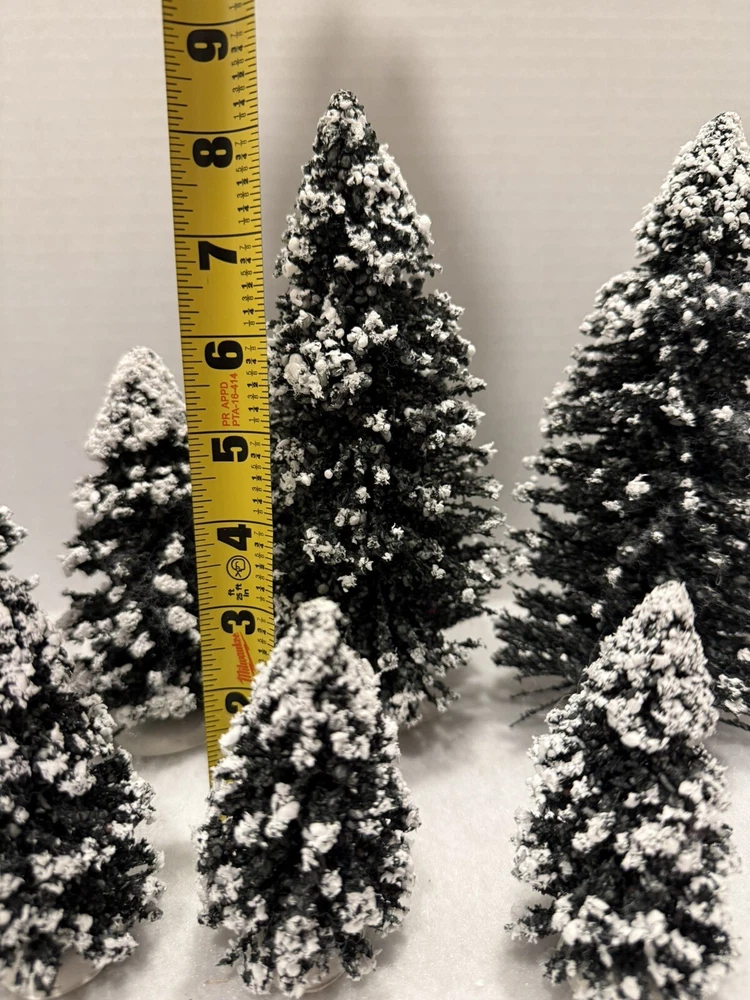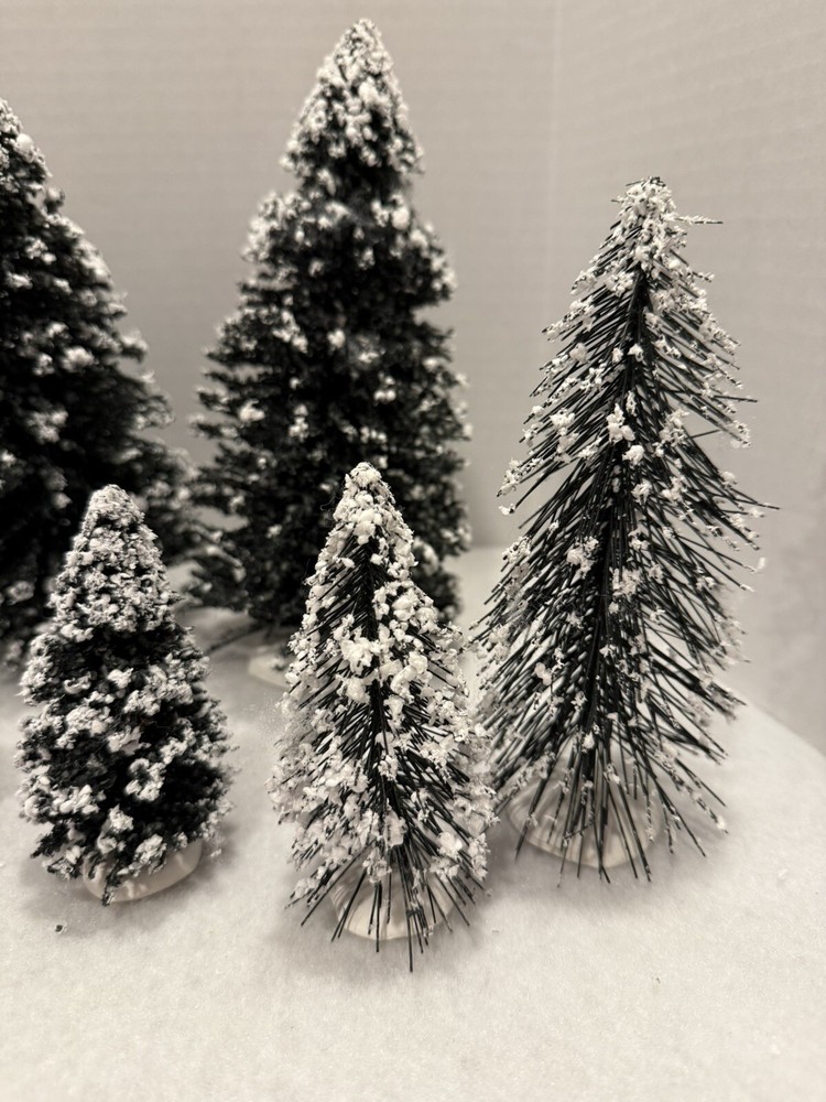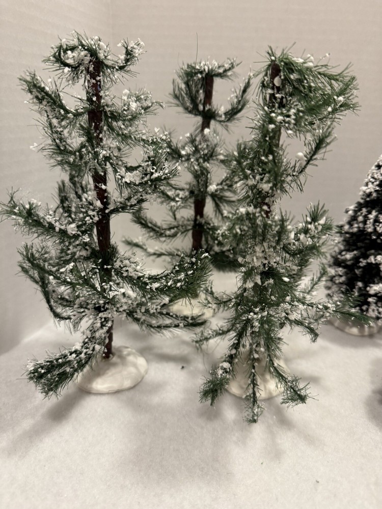 13 Vintage Lemax Christmas Village Trees with Snow Flocking 4-8.5 Inches