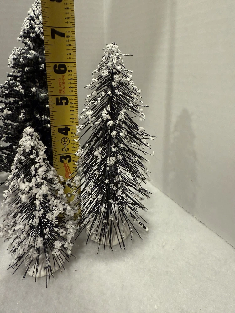 Trees are in good used condition, but do demonstrate some wear. These do “shed” a little bit. Lot of 13 trees. Please see pictures for full description. 13 VTG Xmas Decor Village Pine Trees Snow Flocking Realistic Lemax 4”-8.5”