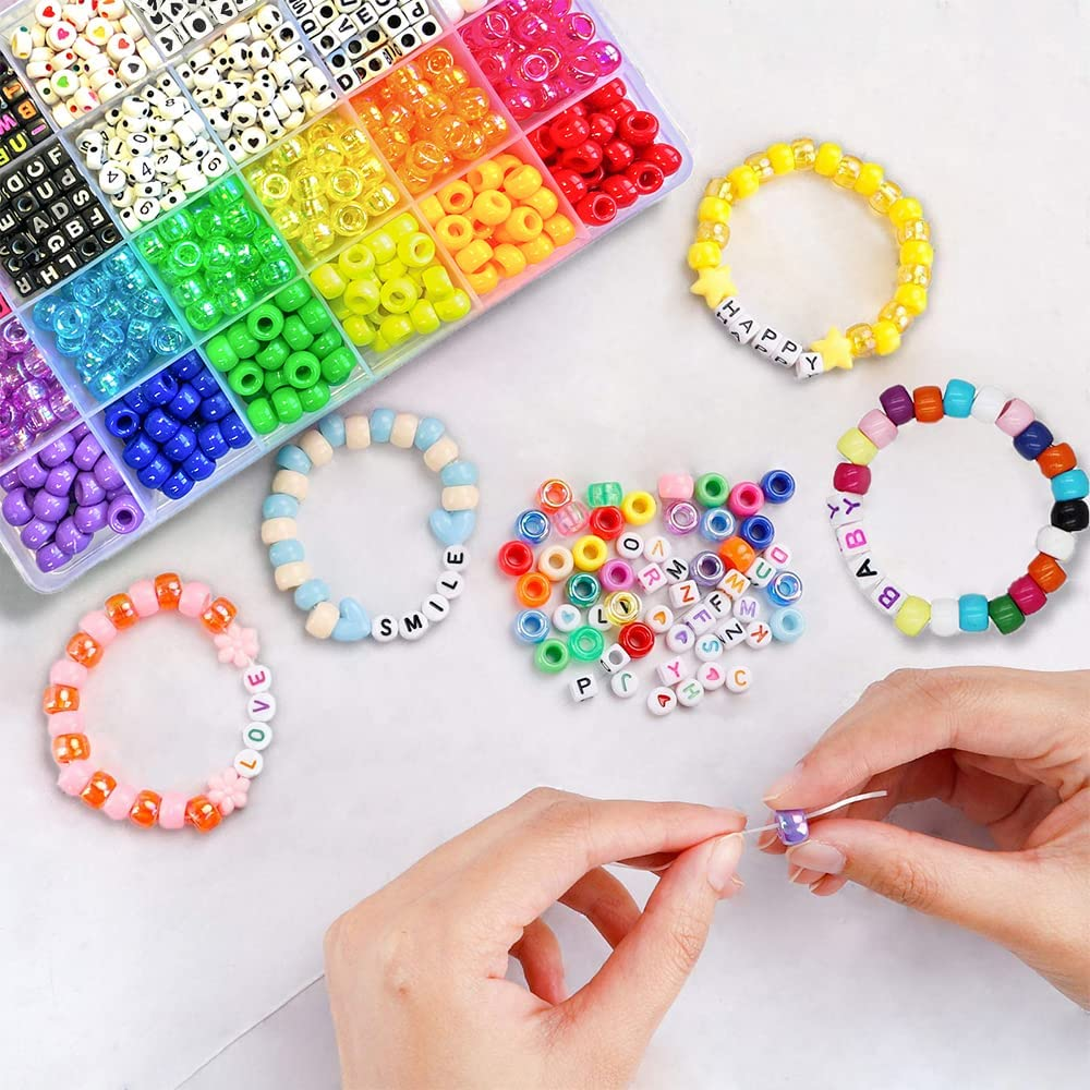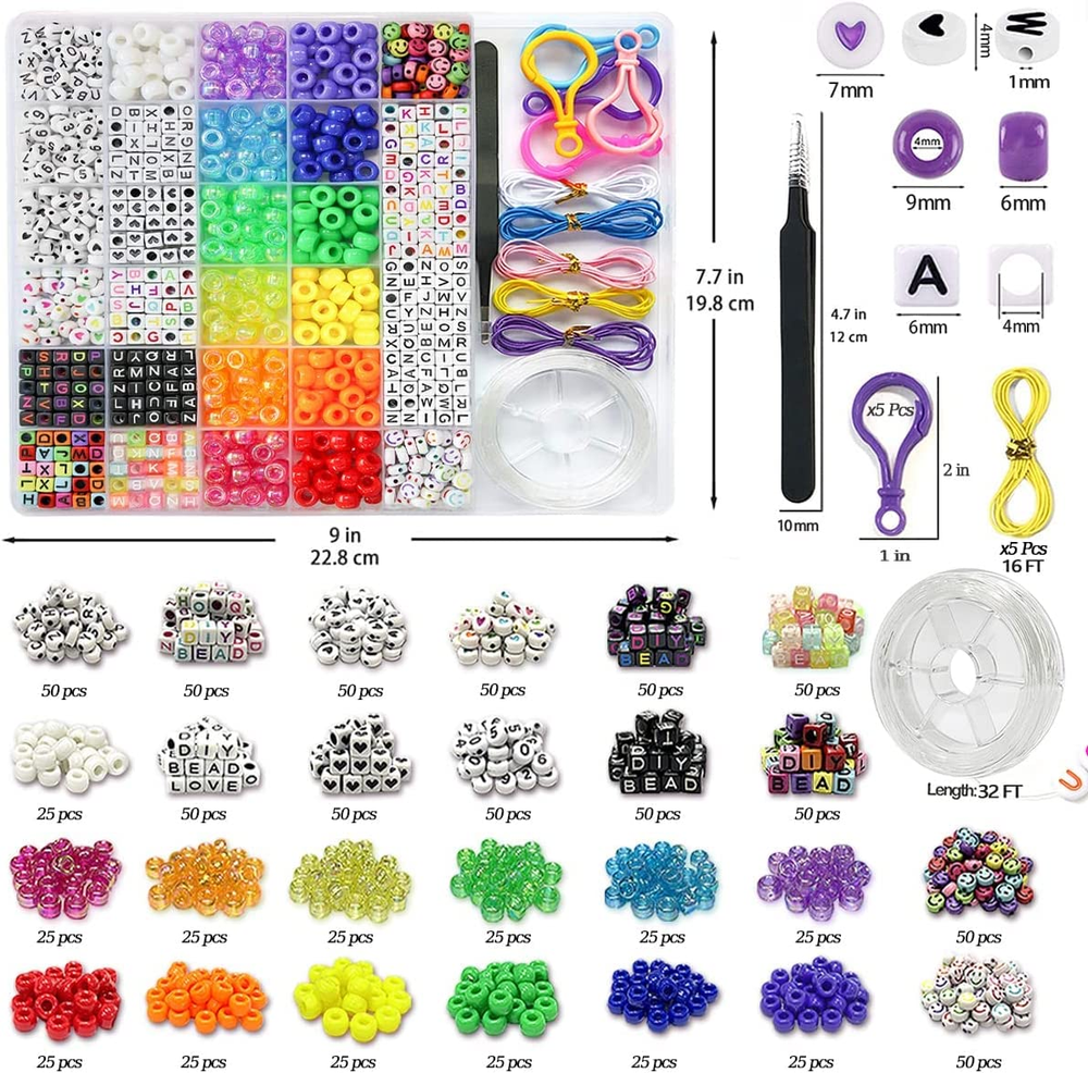 π Minimum age: 3 years and up π [Diverse creations] The pony bead set contains 26 different kinds of beads: about 550 square letter beads, about 350 oval letter beads, about 180 translucent pony beads, about 210 colored pony beads, 5 colored elastic cords 1.5m/roll, 5 plastic bulb clasps, 1 pair of black tweezers, and 8-10m transparent elastic cords, diverse Bead selection makes DIY jewelry fun and informative. π [Bracelet Making Kit], different colors and shapes of beads in a transparent storage box to keep all the beads in order and prevent loss, easy to use and store. π [Comfortable Size] Pony beads are about 6x9mm and letter beads are 6x6mm. The beads for making bracelets are of medium size, suitable for making necklaces, bracelets, braids, etc. π [Quality Assurance] These beads for bracelet making have smooth surface, good shape, symmetrical luster, waterproof and non-fading, with transparent elastic cord and colorful elastic cord, which can make DIY bracelets or other jewelry more convenient and comfortable to wear. π [Risk-free purchase] Customer first, quality assurance, we promise to buy with confidence, if you have any questions please contact us, we will give you satisfactory results until the customer is 100% satisfied. Product Description Why choose LIS HEGENSA? Each item in the pony bead set is designed by a professional jewelry designer to make your DIY easy and fun, And the alphabet beads can be personalized to create special characters, which is very meaningful. The best craft kit gifts for girls ages 3-14 The bracelet making kit contains the beads you need for your craft creations The Kandi Bead Kit includes: About 400 pony beads About 100 smiley beads About 100 round letter beads About 100 round heart beads About 550 square letter beads About 50 square heart beads Color Elastic Cord 40in*5pcs Plastic Bulb Buckle*5pcs Black Tweezers*1pcs Transparent Elastic String 32ft*1pcs 28 Grid Plastic Storage Box with Cover*1 Can be matched with your favorite jewelry DIY custom letters Casual collocation will be the best decoration The elastic rope is made of TPU material, which is elastic enough and not easy to break. It has 32 inches and can weave about 50-60 bracelets 5 different colored elastic ropes 16FT, addressable crafts and pendants. Tweezers help kids easily make DIY beading Lobster clasps in five different colors, Hang your jewelry crafts wherever you want.