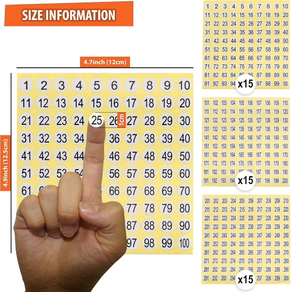 NUMBERS INCLUDE: Each sticker set has 300 round number labels, small numbers starting from number 1 to 300. PACKAGE INCLUDES: 15 sticker sets of self-adhesive number stickers, 4500 number small round stickers in total. SIZE: Small round number sticker, each of these circular stickers has a diameter of 1cm. You can stick them on boxes, bottles, files, etc. They will save you a lot of time and energy. PREMIUM QUALITY: These label stickers are easy to peel off and stick firmly on a flat surface. Perfect for home, office, and inventory storage. USEFUL: These number decals can be used as key markers, classroom labels, toolbox labels, keyboard number stickers, book bin labels, breaker box labels stickers, organizing stickers, inventory labels, etc. IFAMIO ROUND NUMBER STICKERS TINY NUMBER STICKERS FROM 1 TO 300 Suitable for home and office organizing, these adhesive number labels can be used as inventory stickers, breaker panel labels, planner number stickers, calendar number stickers, number stickers for planners, etc. You can easily stick these tiny letter stickers on any flat surface, such as a box, bottle, paper file, etc. You can also use these number stickers for the classroom. These stick on numbers will be your favorite small number decals. Using these self-adhesive small numbered stickers makes it easy for you to locate the target, they will save you a lot of time and energy! Size of small sticker numbers: These black and white decals have a diameter of 1 cm. Premium quality, these sticker numbers are easy to peel off and stick firmly on a flat surface. The package includes 15 sets of number stickers, each set starting from 1 to 300 mini circle stickers. The package comes with 4500 self-adhesive individual stickers in total. What Makes Our Inventory Sticker Labels The Best? NUMBERS INCLUDE: Each sticker set has 300 round number labels, small numbers starting from number 1 to 300. PACKAGE INCLUDES: 15 sticker sets of self-adhesive number stickers, 4500 number small round stickers in total. SATISFACTION GUARANTEED We want you to be happy with your number sticker decals, and we're committed to making sure you're happy with your purchase. If for any reason you're not satisfied, just let us know and we'll gladly offer a refund. So what are you waiting for? Get IFAMIO 4500 round number labels right now!