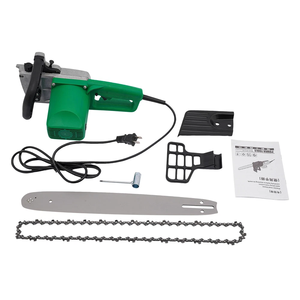 Specification Material: Aluminium, Plastic Process: Quenching Style: Modern Color: Green Plug: US Standard Assembly Required: Yes Mount Type: Free Standing Power: 1300W Speed: 600r/min Voltage: 110V Applicable Wood Diameter: 40cm/15.7in Power Cord Length: 1.5m/4.92ft Product Size: 78*16cm/30.7*6.3in Guide Plate Length: 42cm/16.5in Gross Weight: 5kg/11lbs Package Size: 45*23*19.5cm/17.7*9*7.7in Package Included 1* Electric Chainsaw 1* English and Chinese Instruction All Accessories for Assembly 1300W Handheld Home Electric Wood Cutting Saw, Cutter Pruning Chainsaw, Powerful Description With its powerful function and practicality, this electric chainsaw will win your favor! It adopts high-quality aluminum and right angle chain with high-temperature quenching process, ensuring high hardness, strong power, and sharp cutting. Ergonomic handles, easy-to-operate buttons, and the long power cord provide you with more comfortable and simple operation. It will be a good helper in your sawing work! Key Features Sturdy and Durable : The aluminum and plastic make it resistant to rust, corrosion, deformation, tear, and wear and can withstand high-strength use, ensuring sufficient durability and longevity. Strong Power : The 1300W high-power motor achieves a speed of 600r/min, allowing you to easily and efficiently cut trees with a diameter of less than 15.7in into ideal shapes, greatly improving your work efficiency. Comfortable Grip : The anti-slip ergonomic handle and the auxiliary handle can provide more convenience to your operation, greatly reducing fatigue and strain on your hands, and ensuring a more comfortable grip. Excellent Performance : The high-hardness chain and copper rotor are designed to ensure sharp, smooth, and stable cutting, making it avoid jamming and slipping to ensure continuous operation, making your work quality higher and more precise. Two screws can stably fix the guide plate to prevent slipping. Trouble-free to Use : Its compact size(30.7*6.3in) also enables it to fit into tight or awkward spaces that larger saws cannot, such as between tree branches or into brush piles. Convenient threaded knobs and circular buttons provide more convenience for loading oil and oiling the chain. By twisting the screws, you can easily adjust the tightness of the chain to meet your various needs, making it very simple to use. Safety Guard : The multi-heat dissipation holes can effectively guarantee safety during use to avoid burnout or breakdown, so you can use it with confidence. Easy to Carry and Store : The compact size of 30.7*6.3 inches and light weight(11 lbs) allow you to easily store the product and take it anywhere, providing you with more convenience. Guaranteed Customer Service: We aim to provide quality products and services. If you have problems, please feel free to contact us. W e will reply and solve the problem for you as soon as possible. Details Lock Switch : You can only start the machine by pressing the lock switch and the power switch together to avoid accidents. Reinforced Baffle: The thickened baffle can effectively prevent dust and wood chips from splashing during use, so you can use it with confidence. Long Power Cord : The 4.92ft long power cord reduces usage restrictions, and allows stable and reliable current and voltage, ensuring a safer use. Application It can be widely used in households, DIY studios, decoration industries, construction sites, industrial manufacturing, garden work, the wood processing industry, and other fields to cut wood. How to Use Removal of the chainsaw sprocket cover. Thread the chain onto the guide plate. Pay attention to the correct blade direction. Install the guide plate and chain onto the chainsaw. Align the pin with guide plate hole and install the cover. Use the tensioning screw to the side of the guide bar to adjust the tension on the chainsaw chain. How to Adjust the Chain Tension If the chain is loose, please loosen the screws on the cover. Tighten the tensioner screws and adjust the chain. Adjust the chain to the appropriate tightness. Specification Material: Aluminium, Plastic Process: Quenching Style: Modern Color: Green Plug: US Standard Assembly Required: Yes Mount Type: Free Standing Power: 1300W Speed: 600r/min Voltage: 110V Applicable Wood Diameter: 40cm/15.7in Power Cord Length: 1.5m/4.92ft Product Size: 78*16cm/30.7*6.3in Guide Plate Length: 42cm/16.5in Gross Weight: 5kg/11lbs Package Size: 45*23*19.5cm/17.7*9*7.7in Package Included 1* Electric Chainsaw 1* English and Chinese Instruction All Accessories for Assembly Notes Please be cautious of potential electrical safety hazards, take necessary personal protective measures when using such tools, and keep them out of reach of children on a daily basis. Please read the operating manual completely before use. And pay particular attention to the safety instructions included. Please allow the slight color difference caused by the shooting light and 1-3cm error due to manual measurement and make sure you do not mind before ordering. Payment Delivery details Terms of sales About us Contact us Payment We accept ebay payment 。 Fees such as import duties, taxes are not included in the item price or shipping costs. These charges are the buyer's responsibility. Delivery details Shipping: 2-9 working days to: USA Terms of sales We maintain high standards of excellence and strive for hundred percent customer satisfaction. Feedback is very important to us. We hope that you contact us immediately before you give neutral or negative feedback, so that we can address your concerns. It is impossible to address issues if we do not know about them! About us Your satis faction is our ultimate goal. We work hard to earn your trust and future business. Our certified technicians have tested each item before shipping. The unit comes with 1 year limited warranty on all manufacturing defects. a) If you receive a defective item, you may return it or ask for a discount. Please contact us within 14