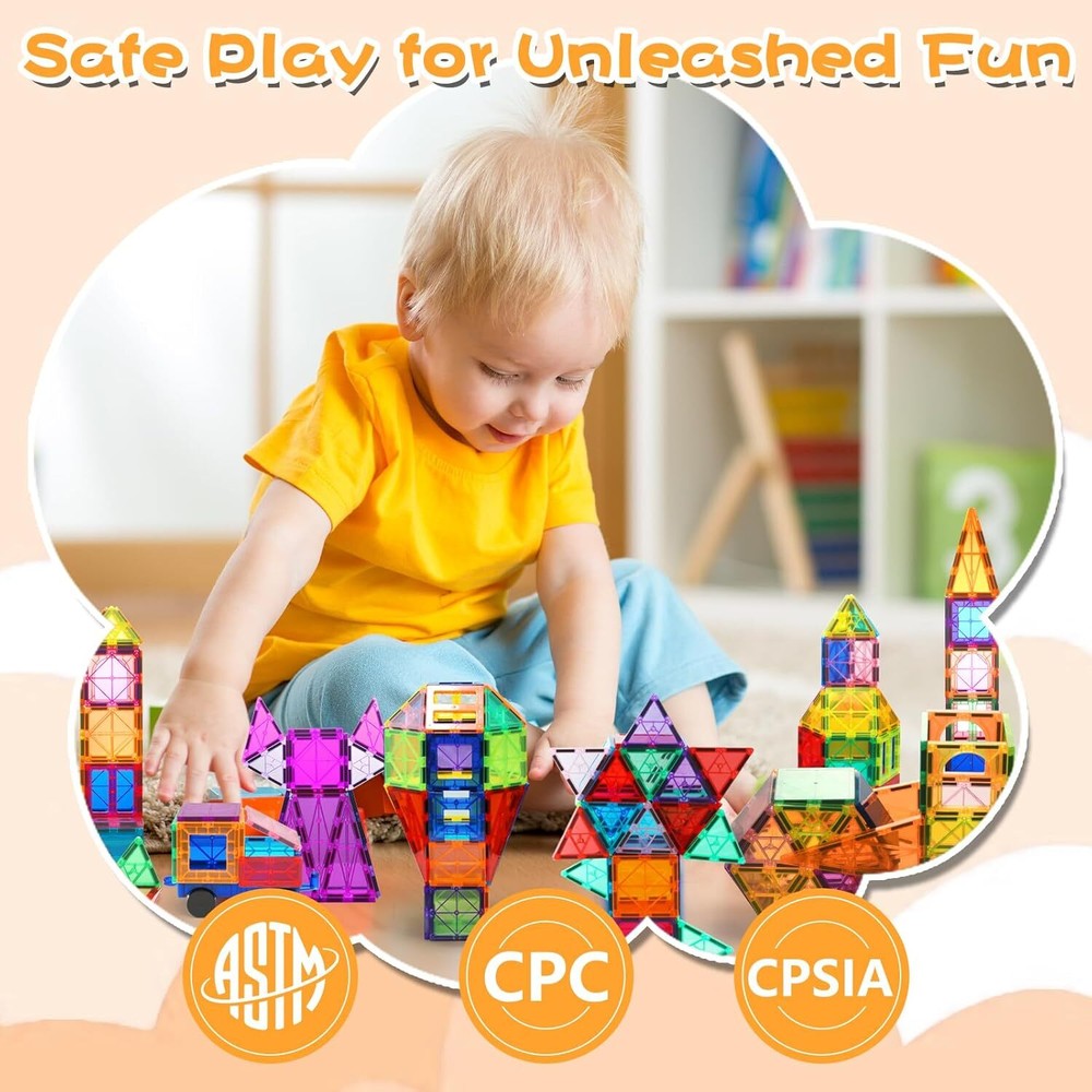 Product Description 130 PCS Magnetic Tiles,Magnetic Building Blocks Tiles 3D Clear Construction,Magnet Building Set with 2 Cars,STEM Educational Magnet Toy Set Gift for Toddlers Kids Boys 3 4 5 6 7 8 9+ Year Old 130 PCS Magnetic Tiles— Magnetic Blocks set includes 15 different shapes, perfect for creating unique models. These vibrant, colorful magnetic tiles offer endless building possibilities for both boys and toddlers. From simple 2D shapes to complex 3D geometric structures, this sensory toy sparks imagination and creativity. As a STEM toy, it promotes exploration, design, and construction, providing countless opportunities for fun and educational play. Safe Kids Toys --- Magnetic tiles toys are "CPSIA" and "ASTM" certified and do not contain any harmful gases. ABS plastic imported and safety magnet materials are safe and harmless. Smooth surface with rounded edges that won't scratch your hands. perfect gifts magnetic toys for boys and girls over 3 years old! Larger & Stronger Magnet --- Reinforcement magnets are used in all 130 pieces. Double layer magnets get stronger magnets easier and faster to build stronger items that don't collapse easily.It offers a fun and educational experience. The toys for ages 8 9 10 11 12 13 boys and girls Learning By Playing --- Magnetic Blocks are designed with a strong emphasis on STEM (Science, Technology, Engineering, and Mathematics) education.Great magnetic construction toys give children hours of fun and help develop their color and shape recognition, creativity and imagination, hands-on skills, design skills, social skills and thinking skills. Great Gifts :Preschool toys are the perfect choice for your child! provides excellent service. If you have any questions, we will take full responsibility for our products! About Us We are a reputable seller with many years of experience selling on eBay. Our goal is to provide high-quality products and excellent customer service. Payment 1.We accept PayPal only. 2.All major credit cards are accepted through secure payment processor PayPal. 3.Payment must be received within 7 business days of auction closing. 4.We ship to your eBay or Paypal address. Please make sure your eBay and Paypal address is correct before you pay. Feedback will be left automatically after we receive your feedback. Please contact us before leaving a Negative feedback or Neutral feedback. We would try our best to help you solving any problem. Shipping Items will be shipped within 1-3 business days when we received payment. (Orders are not processed on weekends & holidays) Tracking information will be sent once item is shipped. Delivery time depends on destination and other factors Item is shipped to ebay address. Leaving correct address can minimize delay. For international shipping and shipping to Guam, Hawaii and Alaska, Please contact us before placing the order. International buyers please note: Import duties, taxes and charges are not included in the item price or shipping charges. These charges are buyer’s responsibility. We will try our best to reduce the risk of the custom duties. Local pick-up is unavailable at the moment. Returns For any issues with Defects, Return, Item Exchange request, please contact us first and send us a message first before opening any type of case or request. We devote ourselves making EVERY CUSTOMER in 100% Satisfactory and resolve any problem. We highly value and appreciate your business. Thank you. No returns will be accepted without an RMA number. Please contact us for the RMA number. Return is acceptable within 30 days of delivery. Return for replacement or money back is optional. Returned items must be in the brand new, unaltered and resalable condition. Seller is not responsible for any labor cost, expense in a dealer store, or damage due to wrong installation. Contact Us We reply any email messages within 1 business / working days(off-duty at weekend). If you do not get a response from us, then please check your junk or spam mailbox. Our Business hours: Mon-Fri 9:00-18:00, UTC/GMT +8 hour s . Please contact us either by clicking "contact seller" in the "purchase history" section or simply click "ask a question" at the bottom of this page. If you are unsatisfied with our item or service, please contact us before leaving any feedback. We are committed to resolve all issues in a friendly and satisfactory manner. To provide you with better service, please provide the following information in your email: Your ebay ID Order problem, order number For product questions, the eBay article number, the product URL or the product SKU Unfortunately, the eBay guidelines do not allow us to provide a phone number. But if you'd rather call please send us an email.