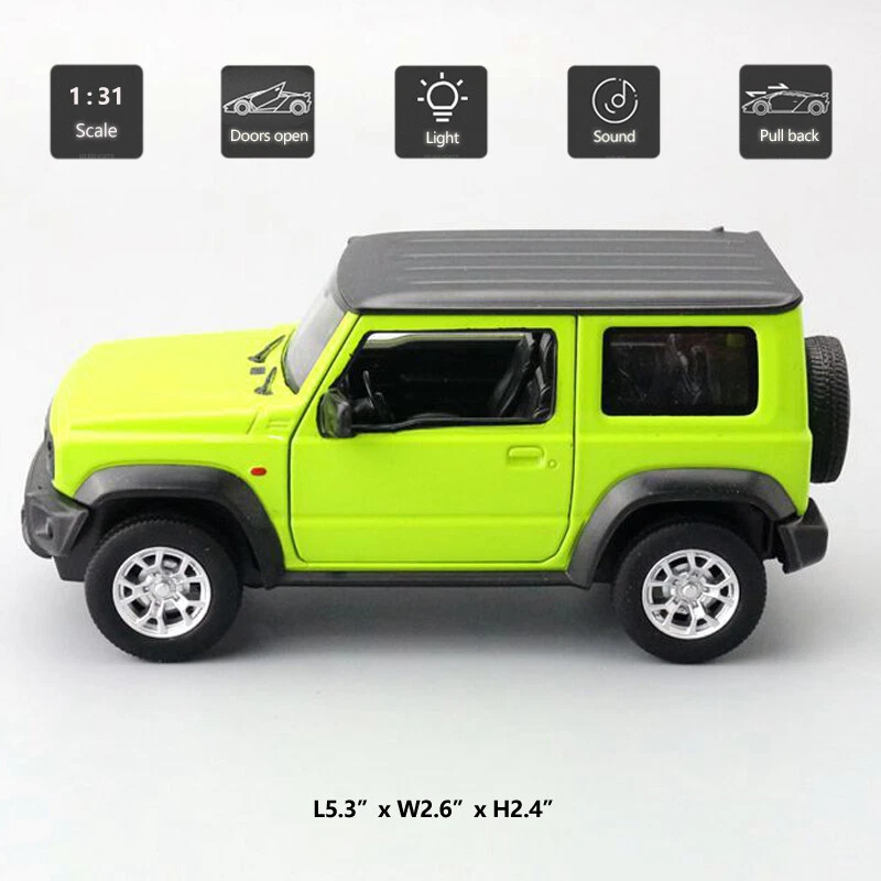 1/31 Suzuki Jimny 2018 SUV Model Toy Car Diecast Metal Toy Vehicle Toys for Kids Item Type Diecast & Toy Vehicles Scale 1:31 Material Diecast and ABS Colour Red and green Dimension About L5.3" x W2.6" x H2.4" (L13.5 x W6.5 x H6.0 cm) Vehicle Type SUV Function *Pull back *Press the car or open the door, it will make sound and light *Two doors can be open Packing Packed in original colour box, in excellent condition Power 3 x AG13/LR44 button cell, power is just for light and sound Tips *Great choice of gift for kids, especially for Birthday, Christmas and New Year Gift *Great item for collector, business gift, home decoration, office decoration, display Warning Don't put in mouth/Keep Away from Fire/Not for Children under 3 Years Notice Due to manual measurement, please allow a little error Package include 1:31 Scale Suzuki Jimny 2018 Model Car (The Batteries NOT Included) Payment Delivery details Terms of sales Payment We accept paypal only. Delivery details We ship orders within 24 hours upon receipt of payment. Terms of sales We provide great products and service. If you have any problems with the order,please do contact us before leaving negative feedback and opening case on eBay.