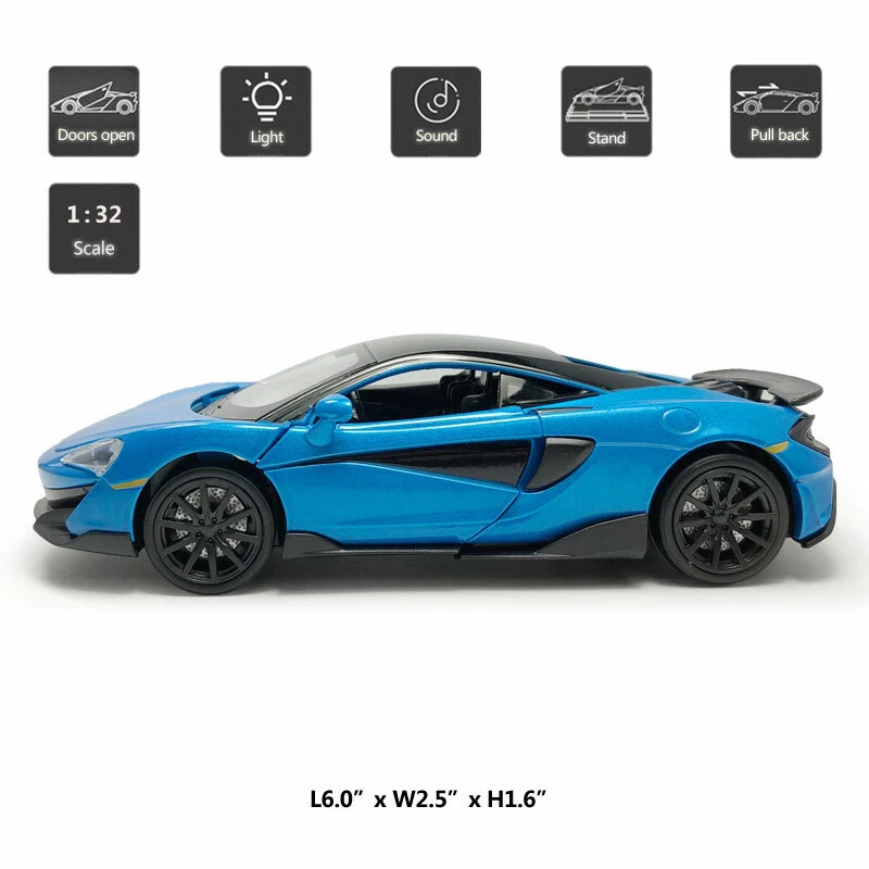 1:32 2019 McLaren 600LT Model Car Diecast Alloy Kids Toys Gift w/ Light Sound Item Type Diecast & Toy Vehicles Scale 1:32 Material Diecast and ABS Colour Black and blue Dimension About L6.0" x W2.5" x H1.6" (L15.2 x W6.3 x H4.0 cm) Vehicle Type Supercar Function *Pull back *Two doors and trunk lid can be open *Press the car, it will make sound and light Packing Packed in original colour box, in excellent condition Power 3 x AG13/LR44 button cell , power is just for light and sound Tips Great choice of gift for kids, especially for Birthday, Christmas and New Year Gift Great item for collector, business gift, home decoration, office decoration, display Warning Don't put in mouth/Keep Away from Fire/Not for Children under 3 Years Notice Due to manual measurement, please allow a little error Package include 1 x McLaren 600LT 2019 1:32 Scale Model Car (Batteries Not Included) Payment Delivery details Terms of sales Payment We accept paypal only. Delivery details We ship orders within 24 hours upon receipt of payment. Terms of sales We provide great products and service. If you have any problems with the order,please do contact us before leaving negative feedback and opening case on eBay.