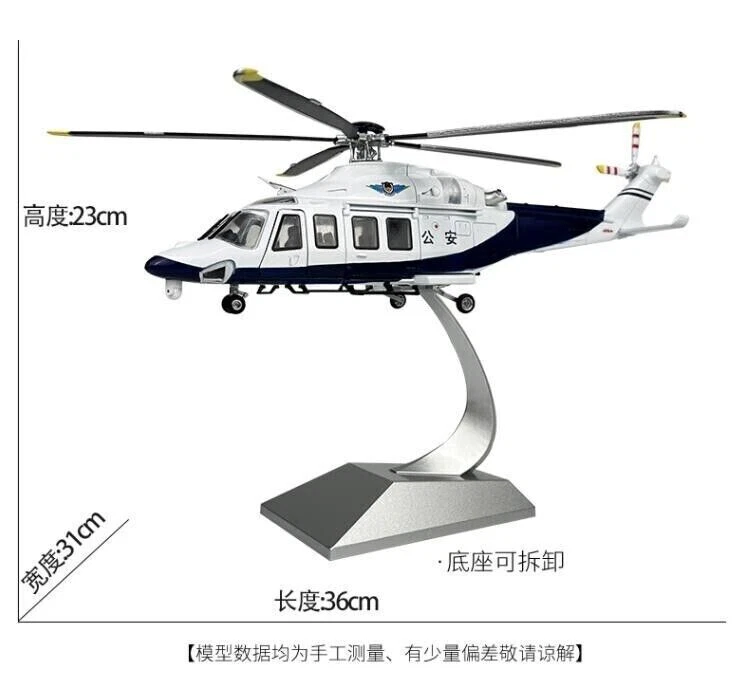 1:32 36CM Police AW139 Helicopter Airplane Diecast Aircraft Plane Model Collection Specification Size 36 x 31 x 23CM( L * W * H ) [ 1cm = 0.39 inch ] Scale: 1:3 2 Material: Diecast Color: As the pictures shown Aircraft : AW139 Condition: Brand new Packing: Mint in original box Shipping and Handling · The order will be shipped within 5 working days(excluding Saturday, Sunday & holiday) after payment. · · We will ship the order by air mail and SpeedPAK. If you need the other delivey way, Please email us for detailed information before purchasing. · · Please make sure your address is right and it is confirmed address you would like to ship to. · · We are not responsibe for custom duty , import tax. Any related requirement for customs declaration, please indicate it in the notice or email us when you pay for the transaction. · · Payment · We accept paypal, credit card and other payment method via Payoneer. · Payment is made within 5 days after purchasing. · Thanks for business & cooperation. Refunds and Return · Item is returned for exchange or full refund in good condition within 30 days after the buyer receive it. Contact If you have any question, please don't hesitate to let us know. Positive feedback is very important to us, any issue in transction, we will do our best to solve and make you satisfied. We greatly appreciate for your cooperation. welcome to our shop!