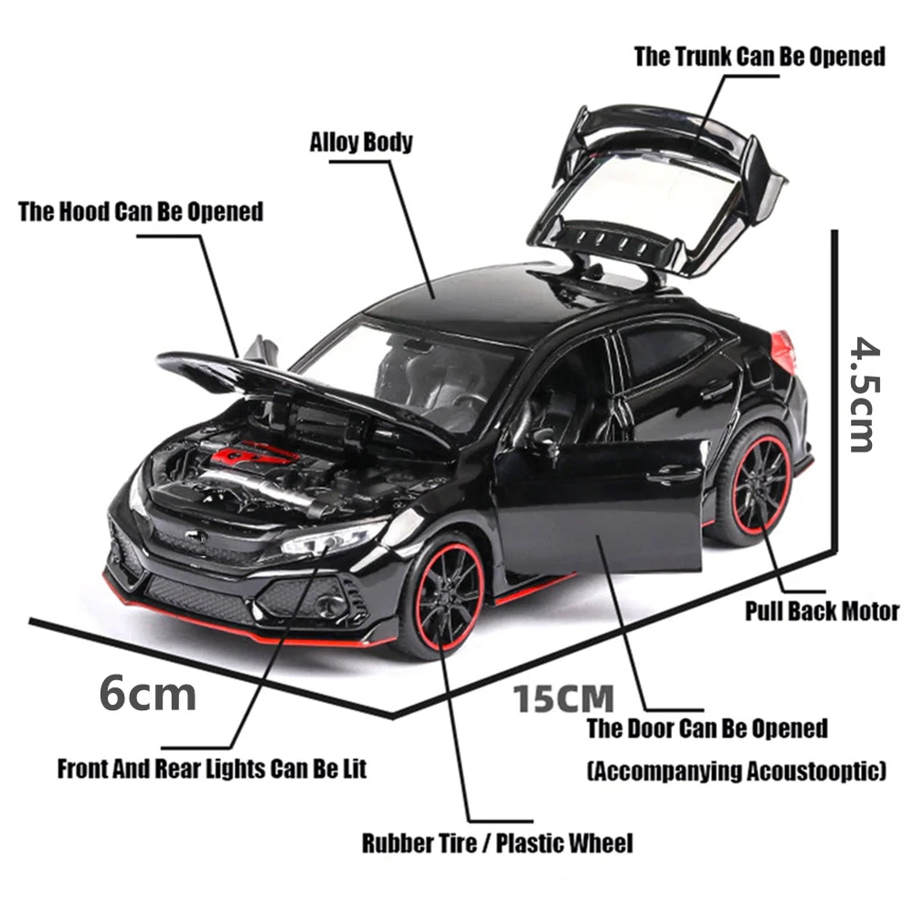 Product Description Features: With light and sound effect and pull back function Front doors, engine cover and trunk lid can be open Press the car or open the door, it will make sound and light Adopts high quality material, durable and safe Great choice of gift for kids, especially for Birthday, Christmas and New Year Gift. Great item for collector, business gift, home decoration, office decoration, display. Specifications: Material: Alloy+ABS+Rubber Size: 15x6x4.5cm/5.9x2.36x1.77in Power supply: Three AG13 button batteries (included) Scale: 1:32 Color: White/Blue/Red/Black Model For Honda Civic Type R Package include: 1* 1:32 Model Toy Car If you have any questions, please feel free to contact us via ebay. We usually respond within 24 hours. Payment Shipping Returns Contact Us We accept all verified payments from ebay. Orders will be shipped after receiving cleared payment. Payment due within 7 days after auction ends and for buy it now listings. We ship most of our orders within 24 hours, and may up to 48 hours for. If you want faster shipping way. Please contact us before making payment. Sometimes due to problems with our transportation company system, your shipping information may be delayed to update. We recommend that you try again after 3-4 days. If you still haven't checked the shipping information, you can contact us by ebay message. Always believe we can figure things out with communication, if it comes to return, the pacakge must be intact and the same as you receive. If you have any questions, please feel free to email our service specialists 24 Hours a Day, 7 Days a Week. We will reply you ASAP. Return/refund is accepted within 30 days after the buyer receives the item. NO exchange will be accepted after 30 days from the date when the item is received. Please contact us first before returning your product!!! If you have any questions, our Customer Service staffs welcome you to email us. We strive to answer all questions and resolve any problems as quickly as possible. You can contact us 7*24, we will reply at the first time, and we will surely solve your problems. Note: 1.We try our best to reply to your emails as soon as possible, however, due to high volume of daily incoming emails and time zone difference, we may not be able to reply your emails immediately. Please allow 1 business days for us to response. If you do not receive any reply from us, please check your email ensuring your mailbox has not reached full size. 2.Due to some ISP SPAM filter settings, you may not be able to receive our replies; if you have problems receiving our emails, you may need to use a different email account to contact us. 3.Please give us the opportunity to resolve any problem. We understand the concerns and frustrations you might have, and will try our best to resolve the issues. Please email us before leaving any negative feedback or open any dispute on PayPal. 4.We care about our valued customers, and will always try to help you. So if you have any problems, please e-mail us immediately. Payment We accept all verified payments from ebay. Orders will be shipped after receiving cleared payment. Payment due within 7 days after auction ends and for buy it now listings. Shipping We ship most of our orders within 24 hours, and may up to 48 hours for. If you want faster shipping way. Please contact us before making payment. Sometimes due to problems with our transportation company system, your shipping information may be delayed to update. We recommend that you try again after 3-4 days. If you still haven't checked the shipping information, you can contact us by ebay message. Returns Always believe we can figure things out with communication, if it comes to return, the pacakge must be intact and the same as you receive. If you have any questions, please feel free to email our service specialists 24 Hours a Day, 7 Days a Week. We will reply you ASAP. Return/refund is accepted within 30 days after the buyer receives the item. NO exchange will be accepted after 30 days from the date when the item is received. Please contact us first before returning your product!!! Contact Us If you have any questions, our Customer Service staffs welcome you to email us. We strive to answer all questions and resolve any problems as quickly as possible. You can contact us 7*24, we will reply at the first time, and we will surely solve your problems. Note: 1.We try our best to reply to your emails as soon as possible, however, due to high volume of daily incoming emails and time zone difference, we may not be able to reply your emails immediately. Please allow 1 business days for us to response. If you do not receive any reply from us, please check your email ensuring your mailbox has not reached full size. 2.Due to some ISP SPAM filter settings, you may not be able to receive our replies; if you have problems receiving our emails, you may need to use a different email account to contact us. 3.Please give us the opportunity to resolve any problem. We understand the concerns and frustrations you might have, and will try our best to resolve the issues. Please email us before leaving any negative feedback or open any dispute on PayPal. 4.We care about our valued customers, and will always try to help you. So if you have any problems, please e-mail us immediately. You may also like 2pcs H4 LED Light Bulbs Conversion Kit 10000LM 6000K Super White 4.59 GBP Portable Mini Metal 5V USB Power Bank DIY Case Charger Box Kit For 18650 Battery 3.19 GBP 10Pcs 4x13x5mm 624zz Steel Sealed Shielded Deep Groove Ball Bearings Replacement 2.39 GBP 2-Port USB VGA KVM Switch Box For Mouse Keyboard Monitor Sharing 2 Computer PC 8.99 GBP 0.5mm-1.6mm Bit Assorted Steel Watch Bracelet Remover Band Pin Punch Tool 9 In 1 10.39 GBP Watch Polishing Scratch Repair Cream Hardware Derusting Tool Grinding Paste 4.69 GBP powered by