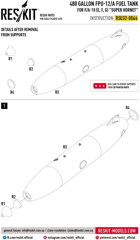 480 gallon FPU-12/A fuel tank for F/A-18 (E,F,G) "Super Hornet" (1 pcs) (3D Printed) ResKit RSU32-0064 - for Plastic Model Kit Enhance Your Scale Models with ResKit | High-Quality Resin & 3D-Printed Accessories RESKIT - Accessories for Scale Plastic Kits Upgrade your scale model collection with high-quality resin parts from ResKit. Our Ukrainian-made parts are meticulously crafted to provide the most accurate and detailed representation of original components. Whether you're building aircraft, helicopters, military vehicles, or figures, ResKit has the perfect parts to enhance your project. Scale: 1/32 Manufacturer: RESKIT (Accessories for Scale Plastic Kits) Country/Region of Manufacture : Ukraine Condition : New in Box Category: Resin & 3D accessories Type of equipment : Aircraft Type of product: Fuel tanks Recommended kit: Any 480 gallon FPU-12/A fuel tank for aircraft model: F/A-18 (E,F,G) "Super Hornet" ResKit is a Ukrainian manufacturer of high-quality resin parts and accessories for scale models . The products are distinguished by a high level of detail and accuracy, which allows modelers to create the most realistic models of military equipment, aviation and other objects. Key Features: Premium Quality: Our resin parts are made with the finest materials and precision engineering. Extreme Detail: Experience unparalleled detail and realism in your models. Wide Range: Choose from a vast selection of parts for various scales and subjects. Easy to Assemble: Our parts are designed for easy integration into your existing model kits. Superior quality! ResKit parts allow you to create a model with incredible detail. ---------------------------- >>> Visit our eBay store! <<< You will find everything you need at great prices. Scale model accessories are a wide range of parts, spares, and components that can help you make your model even more realistic and detailed. In our catalog, you will find everything you need to assemble and repair model cars, airplanes, ships, tanks, and weapons. Our accessories are made from high-quality materials and meet all standards. We offer a wide range of models and sizes so you can find what you need. Buy scale model accessories in our store and make your model even more unique!