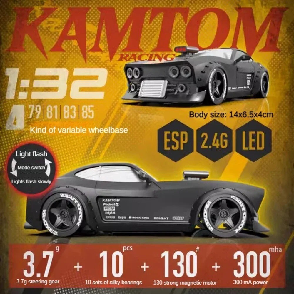 1/32 4X4 RTR 2.4G Remote Control Mini Racing Car with Gyroscope Name: High-speed drift remote control car Material: ABS plastic and electronic components Product scale: 1/32 Model size: 140x65x40mm (length x width x height) Shell type: ABS hard shell Dimensions:140*65*40MM Assembly type: RTR vehicle finished product Electric adjustment features: gyroscope (ESP self-stabilization system Package Includes Original Box,Batteries,Operating Instructions,charger,Remote Controller