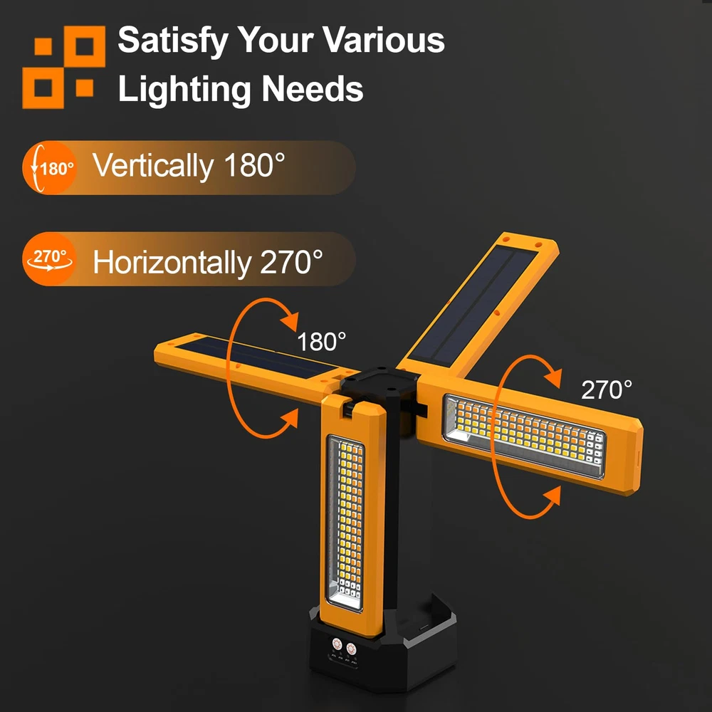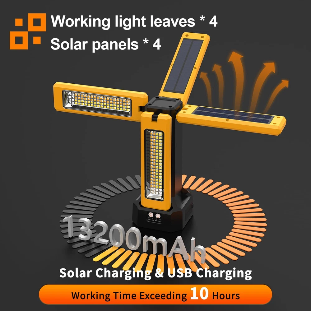 1 ⚠️ ATTENTION ⚠️ 1.The pulley can only be used when the bracket is extended to a parallel position with the ground ⚠️ 2.When installing the pulley, the pulley brake needs to be closed (default closed state)⚠️ 3.When using the storage bag, the pulley needs to be removed 【Powerful brightness and stepless dimming】Included 4X 2000 Max Lumens,you can also stepless dimming to the brightness you want.White/Warm/Nature White/RED(SOS) 4 light modes can help you deal with any situation.Long press the left button to infinitely adjust the brightness, short press the left button to switch between dual light on/4 light on modes, short press the right button to switch between four modes: white light, warm light, warm white light, and red flashing. 【Improved high capacity battery】13200mAh high capacity could keep working OVER 15 hours in normal use and work in lowest lumens OVER 30 hours ,also could charge for your phone or other electric device through the usb port. 【NOTE】Due to the genuine 13,200mAh large capacity battery in our lamp, it will take over 8 hours to fully charge when the battery is depleted. Please be patient. 【IP64 Waterproof】 Our work light features an IP64 waterproof rating, ensuring complete dust protection and resistance to water splashes from any direction. Perfect for outdoor use, it guarantees durability and reliable performance in challenging environments. 【Freedom rotating lights blades】 Featuring by quadruple led lamp heads, it assures a better coverage of illumination. With adjustability of vertically 180°and horizontally 270°rotation,could lights up any corner you want. 【Multi section adjustable folding bracket】Come with a folding bracket,3 height controllers in main pole , three adjustable buckles at the foot joints,you can adjust the bracket to any angle you want. 【Convenient carrying bag】Come with a high quality carrying bag could hold the lights and bracket,also could be a normal bag to carry the little things when you go out working or traving. 【After-sale service】If you encounter any issues after receiving the product, please visit the store page and send us a message to notify us. We have professional customer service available 24/7 who will quickly resolve your issues and provide you with a perfect free after-sales experience.