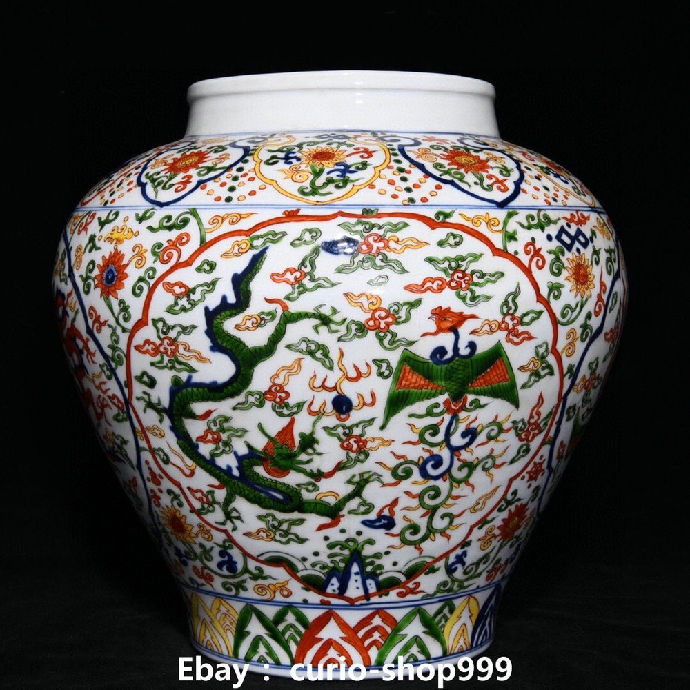 **** Welcome to our antique & Collectable Shop : Porcelain**** Description: Here is 13.3" Ming Jiajing Wucai Porcelain Dragon Beast Phoenix Bird Animal Bottle Vase. It is in good condition, and was created by skilled craftsmen in traditional style with fine handcrafts.This is a great piece of valuable collection, a valuable personal alter or a very good present. the handwork is very fine with incredible detailling. Don't miss out this chance to get it.Wish you good luck! . Material : Wucai Porcelain Size : Heigh t 13.1 Long 13.3 B readth 13.3 (inch) Condition Perfect Condition. Perfect, with no scratches, flaws or repairs. Weight: 5.5 KG----included the weight of packing materials Shipping cost to all over the world countries in Free Honored Customers: We are selling the collectibles products and crafts in Beijing ,China since 1993 and collected them all over the world all the time . In our shop the bronze sculpture, animal, vase, urn, flowerpot,Incense Burner.Table chair sets. Militaria goods. buddha statues, Bodhisattva Statues, Buddhist Ritual Items etc is our speciality .Many of the items we sell come from our own personal collection and have been in our family for a very long time .My great-grandfather was the first in this family to start collecting art & antiques when he still lived in San Xi and Tibet around 1922 ,some of the paintings he once collected can now be seen in museums around the globe.We won't make money from t he shipping cost, if you dislike the item when you receive it,we can refund all of your money to you within thirty days. Please confidence for bidding . We recommend the combine shipping and offer you an big price discount if you order more items together ! 2025.02.09 四 号