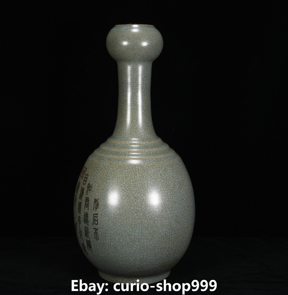 **** Welcome to our antique & Collectable Shop : Porcelain**** Description: Here is 13.4" Rare Song Dynasty Ru Kiln Porcelain Inscription Animal Pattern Bottle Vase.It is in good condition, and was created by skilled craftsmen in traditional style with fine handcrafts.This is a great piece of valuable collection, a valuable personal alter or a very good present. the handwork is very fine with incredible detailling. Don't miss out this chance to get it.Wish you good luck! Material : Ru Kiln Porcelain Size : Heigh t 13.4 Long 6.3 breadth (inch) Condition Perfect Condition. Perfect, with no scratc hes, flaws or repairs. Weight: 1.0 KG----included the weight of packing materials Shipping cost to all over the world countries in Free Honored Customers: We are selling the collectibles products and crafts in Beijing ,China since 1993 and collected them all over the world all the time . In our shop the bronze sculpture, animal, vase, urn, flowerpot,Incense Burner.Table chair sets. Militaria goods. buddha statues, Bodhisattva Statues, Buddhist Ritual Items etc is our speciality .Many of the items we sell come from our own personal collection and have been in our family for a very long time .My great-grandfather was the first in this family to start collecting art & antiques when he still lived in San Xi and Tibet around 1922 ,some of the paintings he once collected can now be seen in museums around the globe.We won't make money from t he shipping cost, if you dislike the item when you receive it,we can refund all of your money to you within thirty days. Please confidence for bidding . We recommend the combine shipping and offer you an big price discount if you order more items together ! 2023.09.02 四 号
