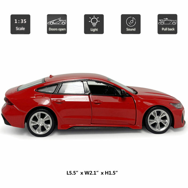1/35 Audi RS 7 Sportback Model Toy Car Diecast Toy Vehicle Metal Boys Gifts Red Item Type Diecast & Toy Vehicles Scale 1:35 Material Diecast and ABS Colour Red Dimension About L5.5" x W2.1" x H1.5" (L14.0 x W5.4 x H3.8 cm) Vehicle Type Coupe Function *Pull back *Two doors can be open *Press the car or open the door, it will make sound and light Power 3 x AG13/LR44 button cell, power is just for light and sound Packing Packed in original colour box, in excellent condition Tips *Great choice of gift for kids, especially for Birthday, Christmas and New Year Gift *Great item for collector, business gift, home decoration, office decoration, display Warning Don't put in mouth/Keep Away from Fire/Not for Children under 3 Years Notice *Due to manual measurement, please allow a little error Package include 1 x 1:35 Scale Audi RS 7 Sportback Model Car (Batteries Not Included) Payment Delivery details Terms of sales Payment We accept paypal only. Delivery details We ship orders within 24 hours upon receipt of payment. Terms of sales We provide great products and service. If you have any problems with the order,please do contact us before leaving negative feedback and opening case on eBay.