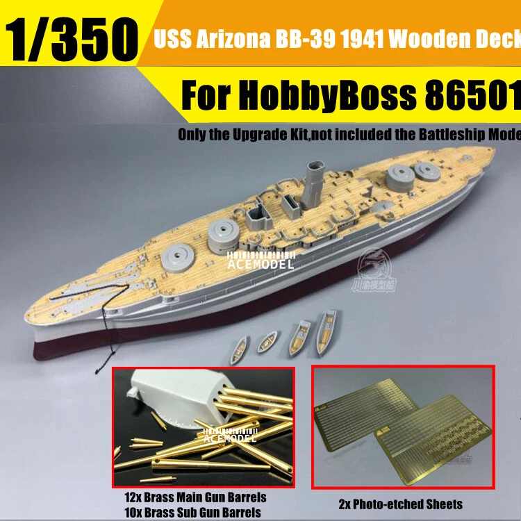 1/350 USS Arizona BB-39 1941 Battleship Super Upgrade Set for HobbyBoss HB86501 1/350 USS Arizona BB-39 1941 Battleship Wooden Deck+Metal Gun Barrels+Photo-etched Sheet Super Detail-up Set for HobbyBoss HB86501 Note: Please noticed this item is ONLY for selling upgrade set, the ship body in the picture is only for demonstration not for selling. The PE parts are generic/universal, are used for the general Detail-up Building.NOT 100% made specifically for this ship model.Thanks for your understanding. Package Included: 1 x Wooden Deck 1x Anchor Chain 12x Brass Main Gun Barrels 10x Brass Sub Gun Barrels 2x Photo-etched Sheets Please noticed this item is ONLY for selling wooden deck, the ship body in the picture is only for demonstration not for selling, and every wooden deck has under restrict testing to ensure it fits with the original ship body perfectly. Instruction: 1. Please use a penknife to cut off the wooden deck to be pasted. 2. Repeatedly compare the positions that need to be pasted to the model deck. 3. Gently tear back glue and paste from top to bottom or from left to right. 4. Finally, use the other end of the penknife for compaction, compaction, and no dislocation. Payment Delivery details Terms of sales Feedback Contact us Payment Special financing available Select PayPal Credit at checkout to have the option to pay over time. Qualifying purchases could enjoy No Interest if paid in full in 6 months on purchases of $99 or more. Other offers may also be available. Interest will be charged to your account from the purchase date if the balance is not paid in full within 6 months. Minimum monthly payments are required. Subject to credit approval. The PayPal Credit account is issued by Synchrony Bank. Delivery details 1.We do everything we can to ship your orders out as soon as possible. 2.Shipping & Handling >>>For American orders, it normally takes 7-15 days for delivery. Handle time takes 2 bussiness days. >>>For International orders, it normally takes 8-20 days for delivery. Duties and taxes may apply. Pleasa check with your country’s Custom and eBay policy for more information. Terms of sales Out 30-day Satisfaction Guarantee assures our customers that they will receive all orders promptly and exactly as described. In addition , it allows customers to return new and unused products in their original factory condition for any reason within 30 days from the date of purchase. Notice: 1.All returns must be pre-approved by Autopartm and have a return merchandise authorization (RMA) number.Unauthorized returns will not be accepted. 2.Buyers are responsible for appropriate packing, returning shipping cost, insurance and returning the item in “new” condition. Used items will not be accepted for return. 3.We will replace the returning item with an identical item, issue a full store credit or a full refund. Feedback 1.We appreciate your business and strived to improve our customer service and our commitment to quality. 2.We will leave a positive feedback immediately after payment is received. We appreciate a positive feedback as much as you do. 3.If for some reason there is any issue with the purchase, please contact us prior to leaving feedback, and we will be glad to work with you to have it resolved. Contact us Our Working Time:(GMT+8)Monday to Friday,9:00-18:00. For inquires and customer support, please send your email via ebay email system. All emails will be responded to within 24 hours during business days.