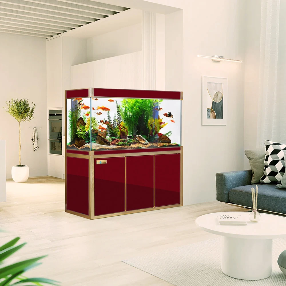 Perfect for any personal aquarium keeper, our tanks are designed to house & breed marine life, coral, aquatic plants, and aquascaping. This all-in-one bundle includes a glass tank, prebuilt aluminum stand, built-in sump filtration system, and LED light. Perfect for helping you start your aquarium right away. The tank is made of high-quality low-iron tempered ultra-white transparent glass ("crystal glass"), with a light transmittance of >91.5% for a clearer-looking tank that is more resistant to scratches and fingerprints. Robust ~0.315 inches thick glass paneling allows the tank to easily withstand the impact of everyday use as well as increase acid and alkali resilience. Each panel is bonded by a German high-endurance biophilic silica gel which can resist saltwater erosion for up to 20 years.