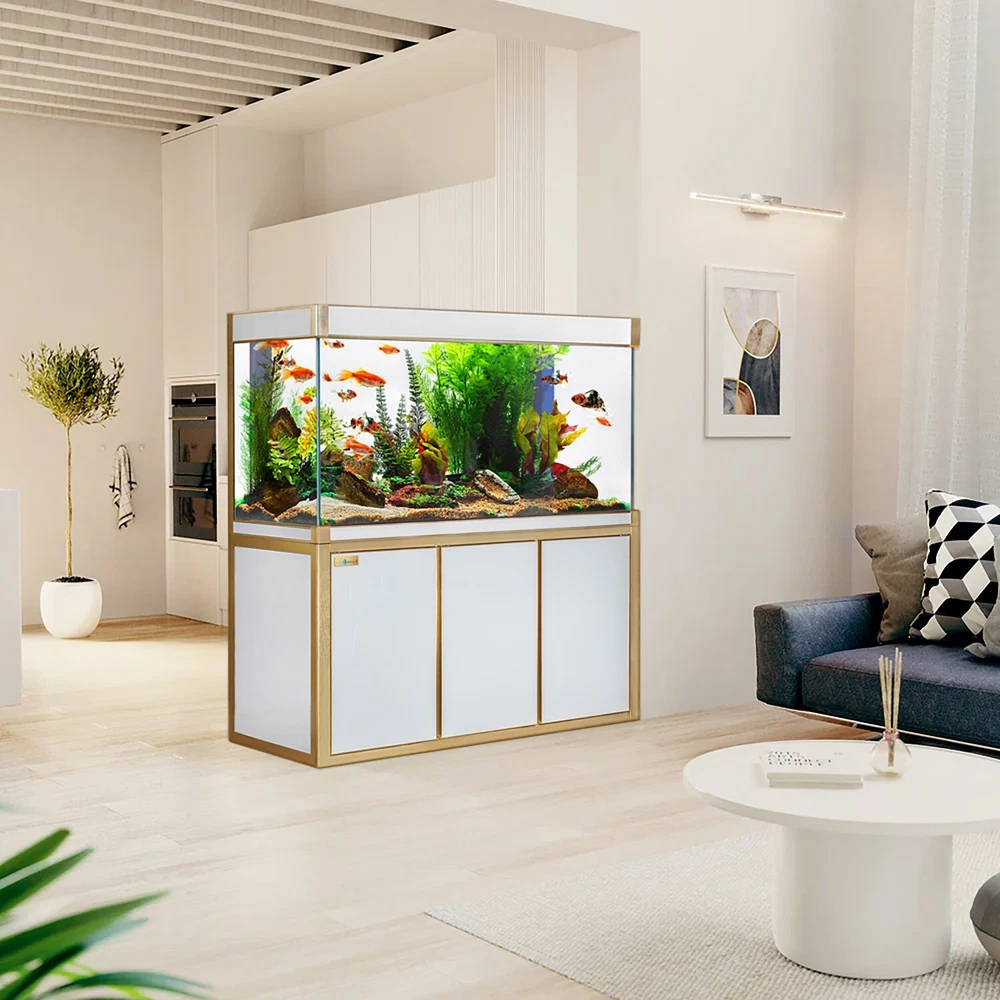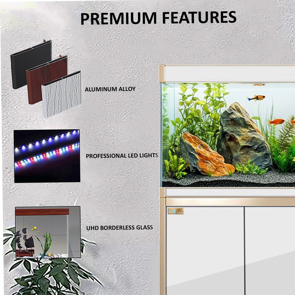 Perfect for any personal aquarium keeper, our tanks are designed to house & breed marine life, coral, aquatic plants, and aquascaping. This all-in-one bundle includes a glass tank, prebuilt aluminum stand, built-in sump filtration system, and LED light. Perfect for helping you start your aquarium right away. The tank is made of high-quality low-iron tempered ultra-white transparent glass ("crystal glass"), with a light transmittance of >91.5% for a clearer-looking tank that is more resistant to scratches and fingerprints. Robust ~0.315 inches thick glass paneling allows the tank to easily withstand the impact of everyday use as well as increase acid and alkali resilience. Each panel is bonded by a German high-endurance biophilic silica gel which can resist saltwater erosion for up to 20 years.