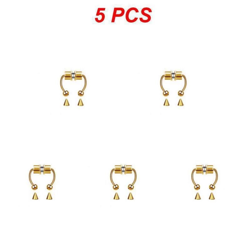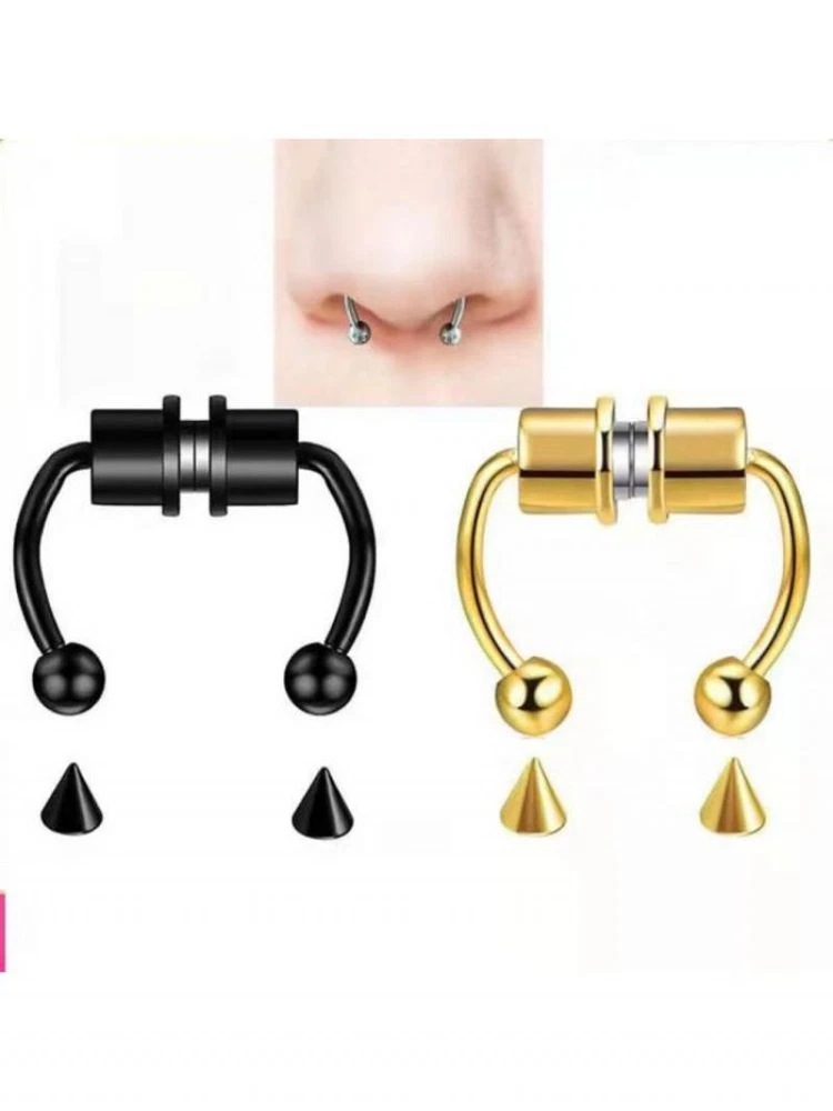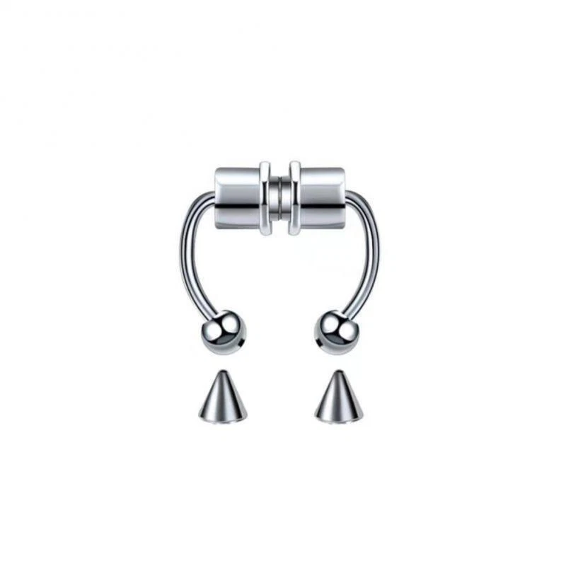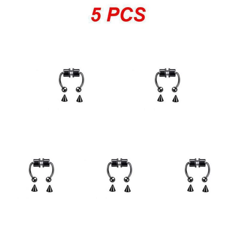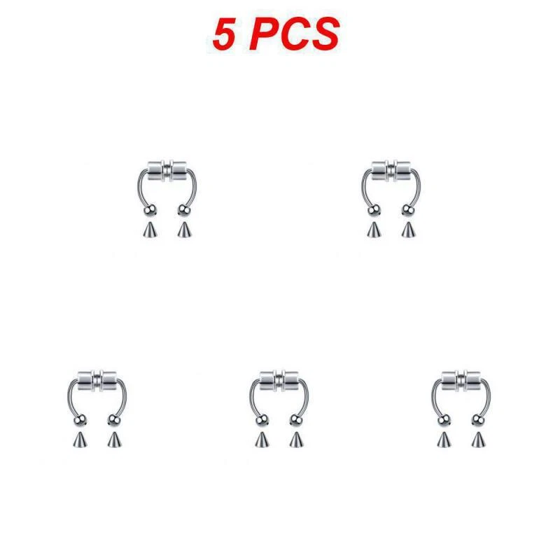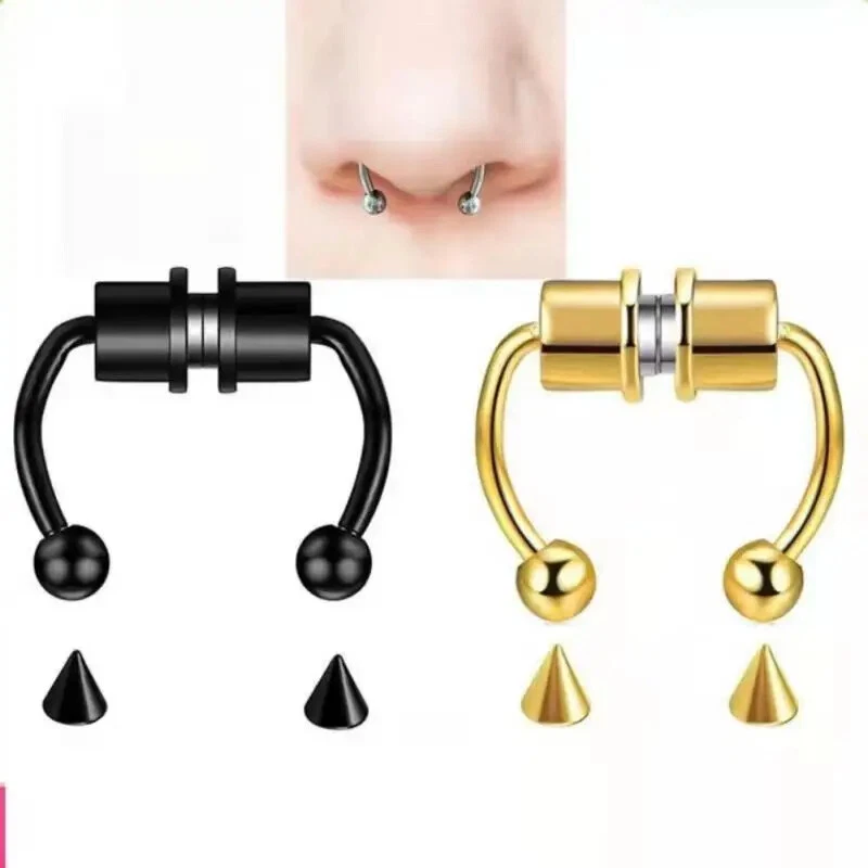 1/3/5PCS Stainless Steel Magnet Nose Ring Horseshoe Ring Nose Clip Non-pierced Nose Hoop Magnetic Nose Nail piercing nariz Description: 【Stainless steel】 These fake nose rings are made of high quality 316L stainless steel, are hypoallergenic, nickel-free and lead-free. They are safe to wear and do not harm your skin. They have a highly polished, smooth surface and are easy to wear and take off. 【Unique design】 These fake nose horseshoe rings are so cool and charming that you will be attractive in the crowd. Do not worry about the magnetic force, they are comfortable enough to be worn all and do not fall off easily. 【Available sizes】: (1.2mm); Inner Diameter: 10mm (3/8); Ball Size: 3mm, Replacement Tip Size: 3mm 【Great gift】 Ideal gift for horseshoe rings with false nose for your wife, husband, daughter, friends on birthdays, anniversaries, Valentine's Day, Mother's Day, etc. Popular artificial nose rings for women, surprise gift for her, to remind the special of how much you care. 【Frequent occasions】 You can coordinate these non-penetrating fake septum rings with your clothes for daily wear and work. They are also suitable for other occasions such as party, dinner, travel etc. Just show your own style and make you shine. Specifications: 【Name】:Stainless steel nose ring 【Color】: silver, black, color, gold, rose gold, blue (customized) 【Size】: Steel ball 3mm sharp cone 3mm The distance between the two balls is about 10mm (there is a slight error in manual measurement, subject to the actual distance) 【Weight】: 1.8g/piece 【Packing】: opp independent packaging Package Included: 1*Nose ring 2*Steel cone
