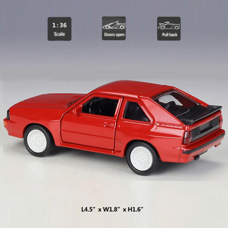 1:36 1983 Audi Sport Quattro Model Car Toy Car Diecast Toys for Kids Boys Gift Item Type Diecast & Toy Vehicles Scale 1:36 Material Diecast and ABS Colour Red Dimension About L4.5" x W1.8" x H1.6" (L11.5 x W4.6 x H4.0 cm) Vehicle Type Sedan Vehicle Year 1983 Function *Pull back *Two doors can be open Packing Packed in original colour box, in excellent condition Tips *Great choice of gift for kids, especially for Birthday, Christmas and New Year Gift *Great item for collector, business gift, home decoration, office decoration, display Warning Don't put in mouth/Keep Away from Fire/Not for Children under 3 Years Notice *Due to manual measurement, please allow a little error Package include 1 x 1:36 Scale Audi Sport Quattro Model Car Payment Delivery details Terms of sales Payment We accept paypal only. Delivery details We ship orders within 24 hours upon receipt of payment. Terms of sales We provide great products and service. If you have any problems with the order,please do contact us before leaving negative feedback and opening case on eBay.