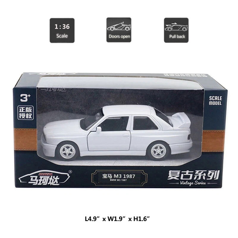 1/36 1987 BMW M3 Model Toy Car Diecast Toy Vehicle Metal Alloy Toys for Kids Item Type Diecast & Toy Vehicles Scale 1:36 Material Diecast and ABS Colour White and black, as picture shows Dimension About L4.9" x W1.9" x H1.6" (L12.5 x W4.8 x H4.0 cm) Vehicle Type Vintage Car Vehicle Year 1987 Function *Pull back *Two doors can be open Package Packed in original colour box, in excellent condition Tips *Great choice of gift for kids, especially for Birthday, Christmas and New Year Gift *Great item for collector, business gift, home decoration, office decoration Warning Don't put in mouth/Keep Away from Fire/Not for Children under 3 Years Notice Due to manual measurement, please allow a little error Package include 1 x 1:36 Scale BMW M3 Model Car Payment Delivery details Terms of sales Payment We accept paypal only. Delivery details We ship orders within 24 hours upon receipt of payment. Terms of sales We provide great products and service. If you have any problems with the order,please do contact us before leaving negative feedback and opening case on eBay.
