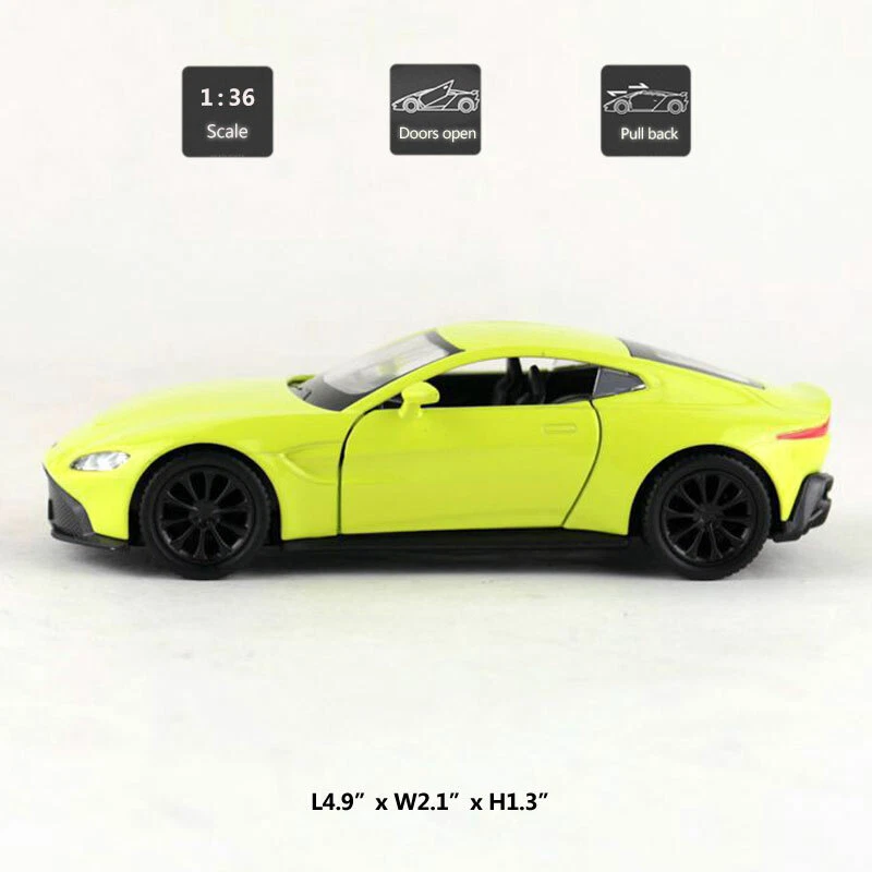 1:36 Aston Martin Vantage Model Car Toy Cars Diecast Vehicle Toys for Kids Boys Item Type Diecast & Toy Vehicles Scale 1:36 Material Diecast and ABS Colour White, yellow and matte black Dimension About L4.9" x W2.1" x H1.3" (L12.4 x W5.3 x H3.3 cm) Vehicle Type Sports Car Function *Pull back *Two doors can be open Packing Packed in original colour box, in excellent condition Tips *Great choice of gift for kids, especially for Birthday, Christmas and New Year Gift *Great item for collector, business gift, home decoration, office decoration, display Warning Don't put in mouth/Keep Away from Fire/Not for Children under 3 Years Notice Due to manual measurement, please allow a little error Package include 1 x 1:36 Scale Aston Martin Vantage Model Car Payment Delivery details Terms of sales Payment We accept paypal only. Delivery details We ship orders within 24 hours upon receipt of payment. Terms of sales We provide great products and service. If you have any problems with the order,please do contact us before leaving negative feedback and opening case on eBay.