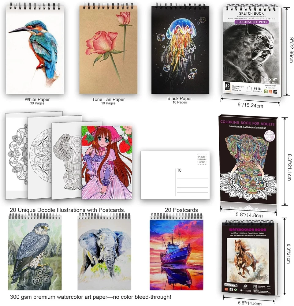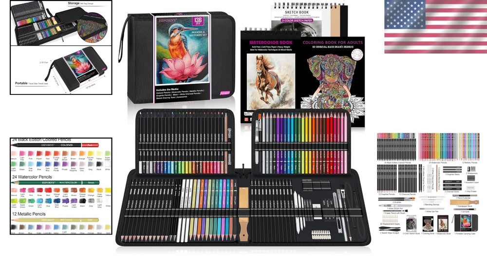 136-Piece Art Pencil Set in Zipper Case ‹ › ‹ › ‹ › ‹ › ‹ › ‹ › ‹ › ‹ › ‹ › 136-Piece Art Pencil Set in Zipper Case Discover Artistic Excellence Unleash your creativity with this comprehensive 136-piece art pencil set—perfectly designed for artists of all levels! Complete Drawing Supplies Featuring 9 types of professional drawing pencils, this set includes: 12 charcoal pencils for rich, deep sketches. 12 graphite pencils varying from H to B degrees for versatile shading. 24 black edition colored pencils delivering vibrant hues. 24 watercolor pencils for seamless blending. 12 metallic colored pencils to add a touch of shimmer. 3 white charcoal pencils for highlighting. 2 woodless graphite pencils for smooth application. 1 colorless blender pencil to blend colors effortlessly. 1 eraser pencil with brush for precision erasing. Extra Drawing Sketching Supplies Kit Includes essential accessories for a complete experience: 3 graphite sticks and 3 charcoal sticks for varied textures. 3 blending stumps and 2 sketch wipe scrapers for flawless blending. 20 replacement heads, 1 kneaded eraser, 1 vinyl eraser, 1 white gel pen, and 1 water brush pen. 2 brushes, 1 sandpaper block, 2 sharpeners, and 1 art knife. Pencil extender to maximize use. Unique Multi-Color Sketchbook Set Each sketchbook offers a unique experience: Sketchbook (6 x 9", 100GSM, 50 Pages: 30 white, 10 toned tan, 10 black) A5 coloring book (160GSM, 20 unique illustrations) with postcard functionality. A5 watercolor book (300GSM, 12 Pages) offers excellent water absorption and clean lines. Artist Quality Pencil Drawing Set Pre-sharpened leads ensure smooth operation and durability. Perfect for shading, blending, drawing, sketching, doodling, and coloring. Bright and vibrant colors aid in creating stunning visuals. Portable Travel Size Pencil Case Lightweight and durable zipped case (12"x 8.74"x 2.75") for easy transportation. Designed to keep your art supplies organized and protected, whether at school or on the go. Giftable Art Set This art pencil set makes an ideal gift for artists, students, or anyone with a passion for creativity. Perfect for holidays, birthdays, graduations, or any special occasion. Encourage artistic expression with this remarkable set! Elevate your artistic journey—order your 136-Piece Art Pencil Set today! Shipping Free & Fast Shipping - We offer free shipping to most of the USA with a normal delivery time of 3-10 business days. However, due to various situations, additional delivery time (up to 3 weeks) may be required for some items. Alternative Carriers - We may use alternative carriers (e.g. USPS, FedEx, UPS, etc.) to ensure your package arrives safely and on time. Due to the use of multiple carriers, we are unable to provide a tracking number automatically. Handling Time - Orders are processed and shipped within 1-5 business days of receiving cleared payment. Shipping Restrictions - Shipping to Alaska, Hawaii, Puerto Rico, Guam, and other US territories may incur shipping charges or delivery restrictions. Please contact us before ordering, or your order can be refunded/cancelled. State Restrictions - There may be restrictions based on your state of purchase. For example, certain items may not be shipped to California due to state regulations. Contact for Tracking Updates - If you require tracking updates or have any concerns about the delivery of your order, please feel free to contact us, and we will be happy to assist you. Return 30-Day Hassle-Free Returns - We want you to be completely satisfied with your purchase. If you are not, you can return the item within 30 days of receiving it for a full refund or exchange. Easy Return Process - To start a return, simply contact us and we will provide you with a prepaid return shipping label and detailed instructions. Restocking Fee - There are no restocking fees for returns. However, the buyer is responsible for return shipping costs if the return is not due to a seller's error. Refund Processing Time - Refunds will be processed within 5 business days of receiving the returned item in its condition. Payment We accept all major credit cards, PayPal, and Apple Pay for your convenience. Your payment information is secure and encrypted to ensure a safe and seamless transaction. Please complete your payment within 3 days of purchase to avoid any delays in shipping. Feedback Your feedback is extremely important to us. We strive to provide the best products and customer service possible. If you are satisfied with your purchase, please take a moment to leave us a positive review. If you have any concerns or issues with your order, please contact us before leaving negative feedback. We are committed to resolving any problems and ensuring your satisfaction. Contact Us If you have any questions or concerns, please feel free to out to our customer support team. You can contact us through the eBay messaging system. We are available Monday to Friday, 9:00 am to 5:00 pm EST, and we will do our best to respond to your inquiry within 24 hours. Buy it now and enjoy a pleasant shopping experience! Unit Quantity: 3.78 Color Style: Single Color,Black Type: Pencil Set Color: Black