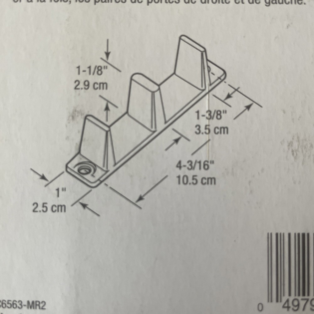 The N 6563 Plastic Sliding Closet Door Guide is designed for 1-3/8 inch thick doors, providing a modern and stylish solution for your sliding door needs. This white plastic guide is easy to install and requires no batteries or assembly, making it convenient for both DIY enthusiasts and professionals. With a warranty against manufacturing defects for 1 year and dimensions of 4.75 x 1.12 x 1 inches, this durable and reliable product ensures smooth operation and functionality for your sliding closet door. This item was opened but not used. It is in good condition. Please refer to the pictures for the best details of the exact item you are receiving. Photos are NOT stock photos!