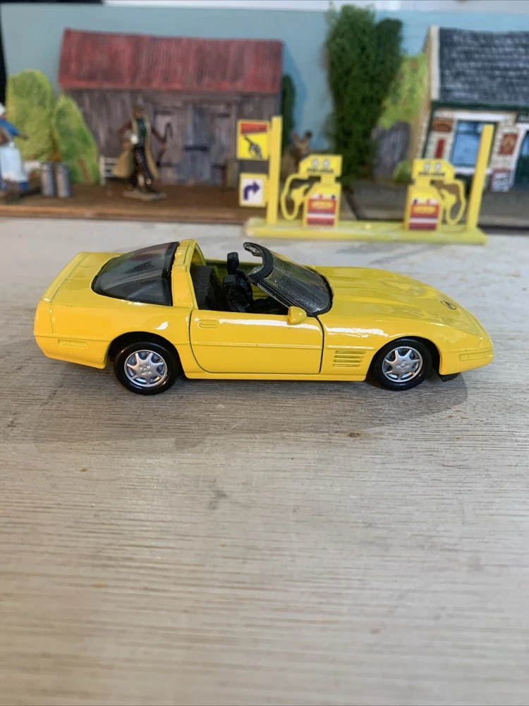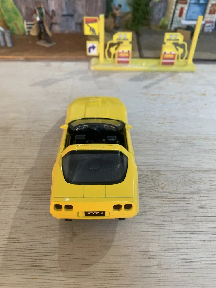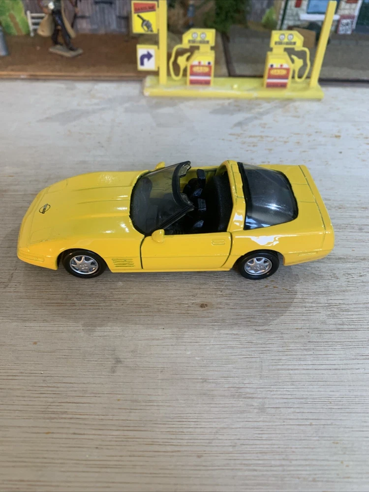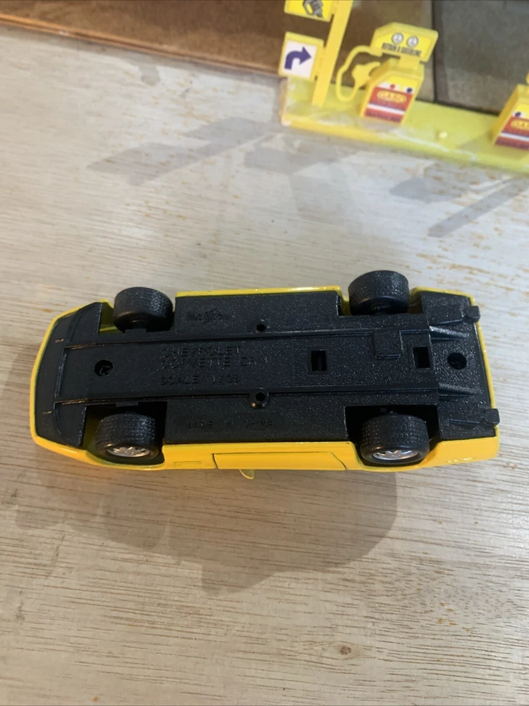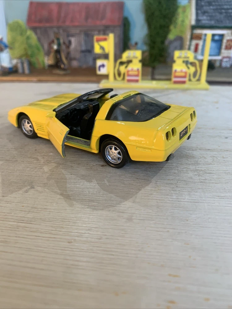 The 1/38 Maisto Classic Sports Car Collection Chevrolet Corvette ZR-1 is a diecast model car in yellow colour. Made by Maisto in China, this 1:38 scale Chevrolet Corvette features pull back 'n go action. Designed for children aged 3 and up, this toy car is part of the Cars character family and is a part of the classic sports car collection.