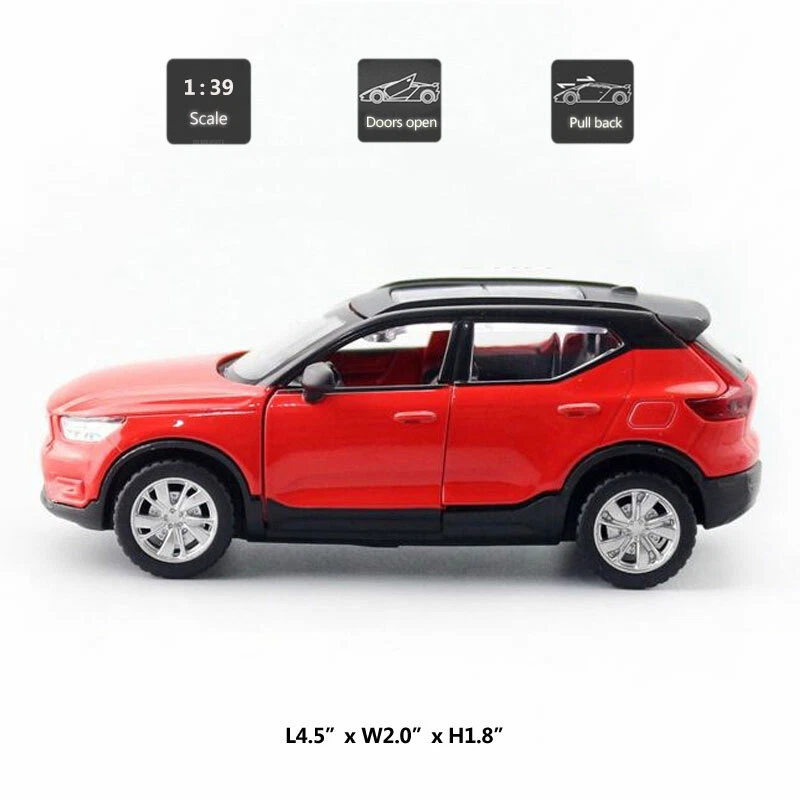 1/39 XC40 SUV Model Toy Car Diecast Toy Vehicle Metal Alloy Toys for Kids Red Item Type Diecast & Toy Vehicles Scale 1:39 Material Diecast and ABS Colour Red Dimension About L4.5" x W2.0" x H1.8" (L11.5 x W5.0 x H4.5 cm) Vehicle Type SUV Function *Pull back *Two doors can be open Packing Packed in original colour box, in excellent condition Tips *Great choice of gift for kids, especially for Birthday, Christmas and New Year Gift *Great item for collector, business gift, home decoration, office decoration, display Warning Don't put in mouth/Keep Away from Fire/Not for Children under 3 Years Notice Due to manual measurement, please allow a little error Package include 1 x 1:39 Scale Volvo XC40 Model Car Payment Delivery details Terms of sales Payment We accept paypal only. Delivery details We ship orders within 24 hours upon receipt of payment. Terms of sales We provide great products and service. If you have any problems with the order,please do contact us before leaving negative feedback and opening case on eBay.